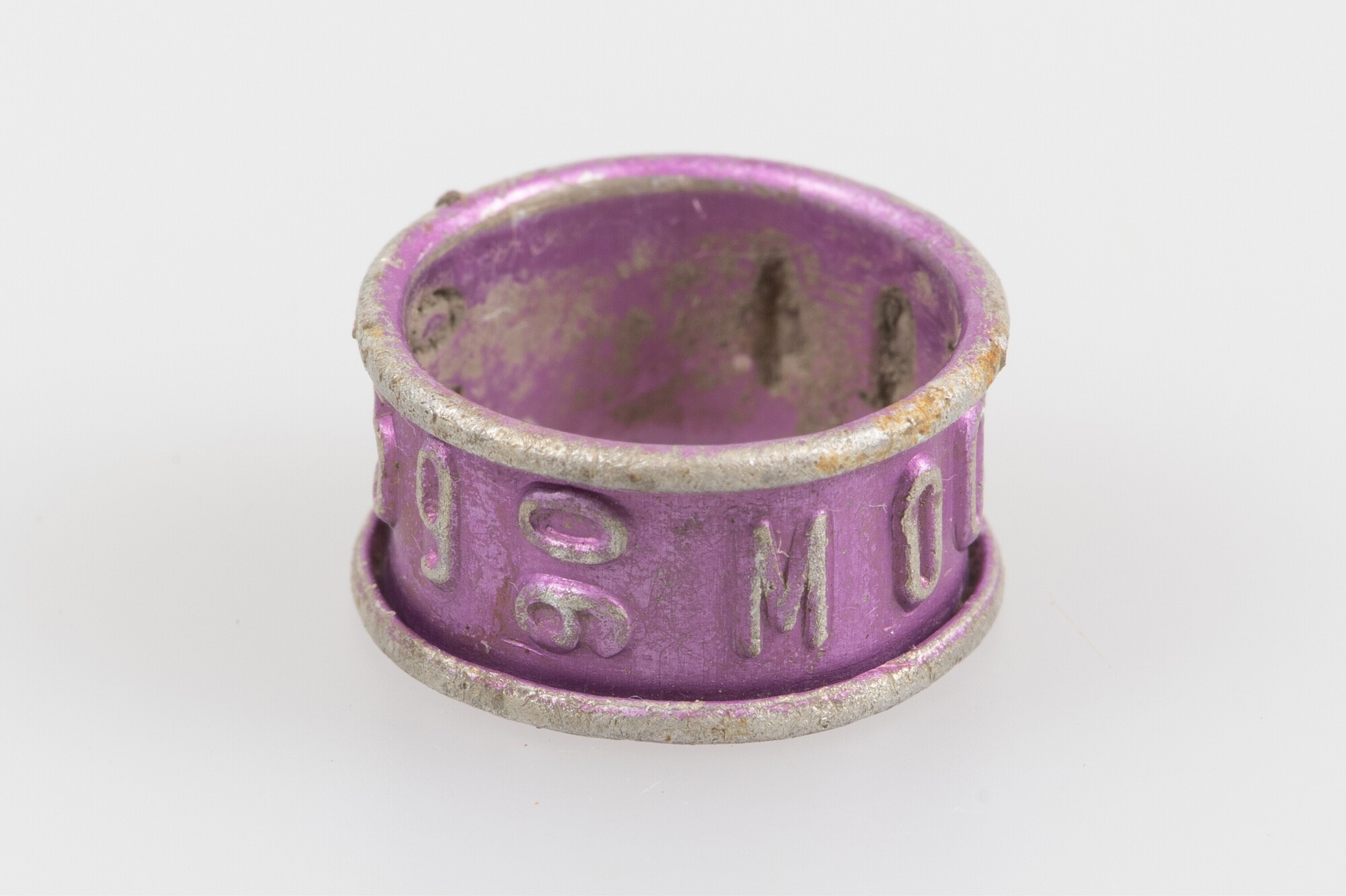 Ring; duivenring; paars; internationale belangenvereniging voor liefhebbers en kwekers van vogels Aviornis; gestanste tekst: AO / 59 / 90 / M 00594