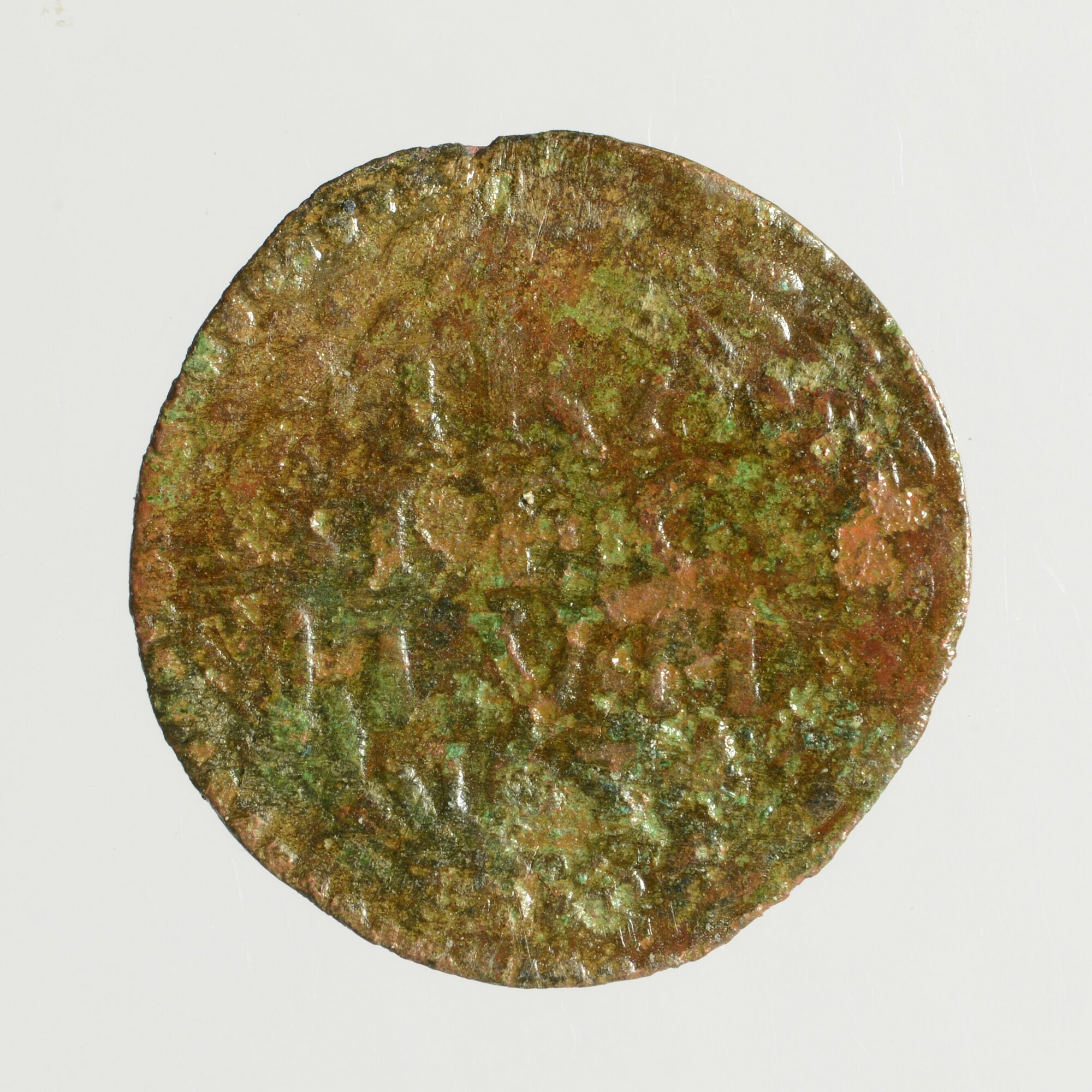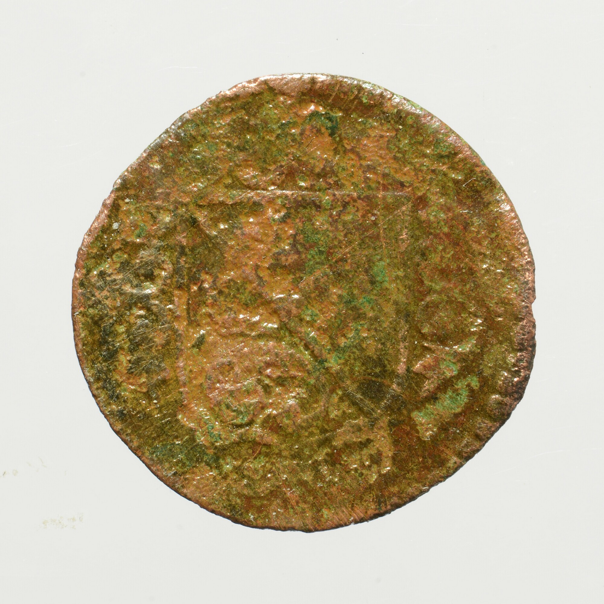 Duit; Utrecht stad (1581-1795); vz.: binnen bladerkrans in vier regels: TRA / IEC / TUM / 1634; kz.: gedamasceerd wapenschild van de stad Utrecht met versiering rondom; muntplaats: Utrecht; gewicht: 1.40 gram