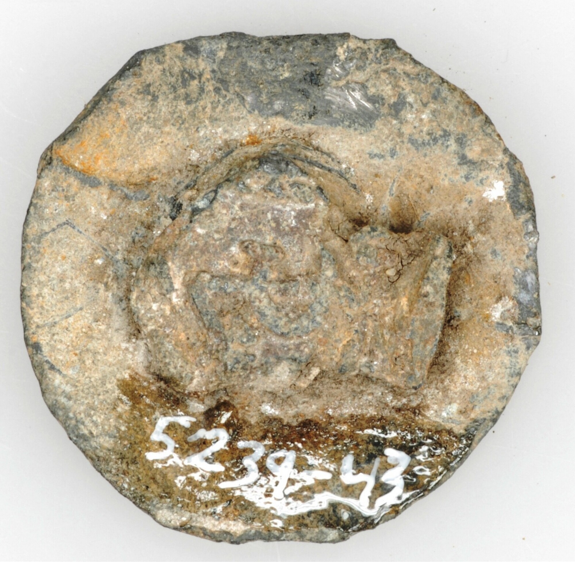 Textiellood; pb-tex; vz.: drie haringen (?) (wapen Enkhuizen); kz.: gestileerde letter ''P''