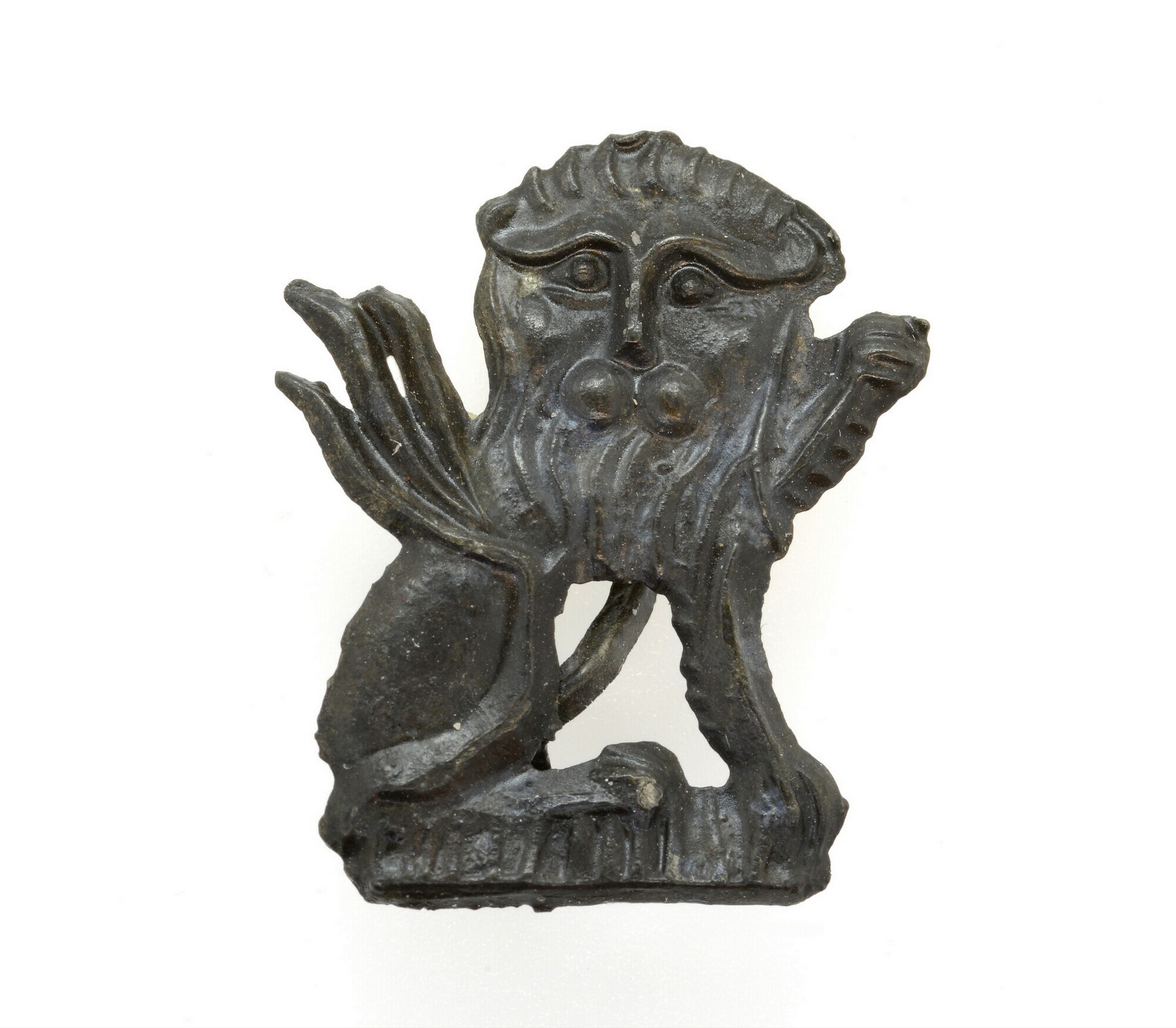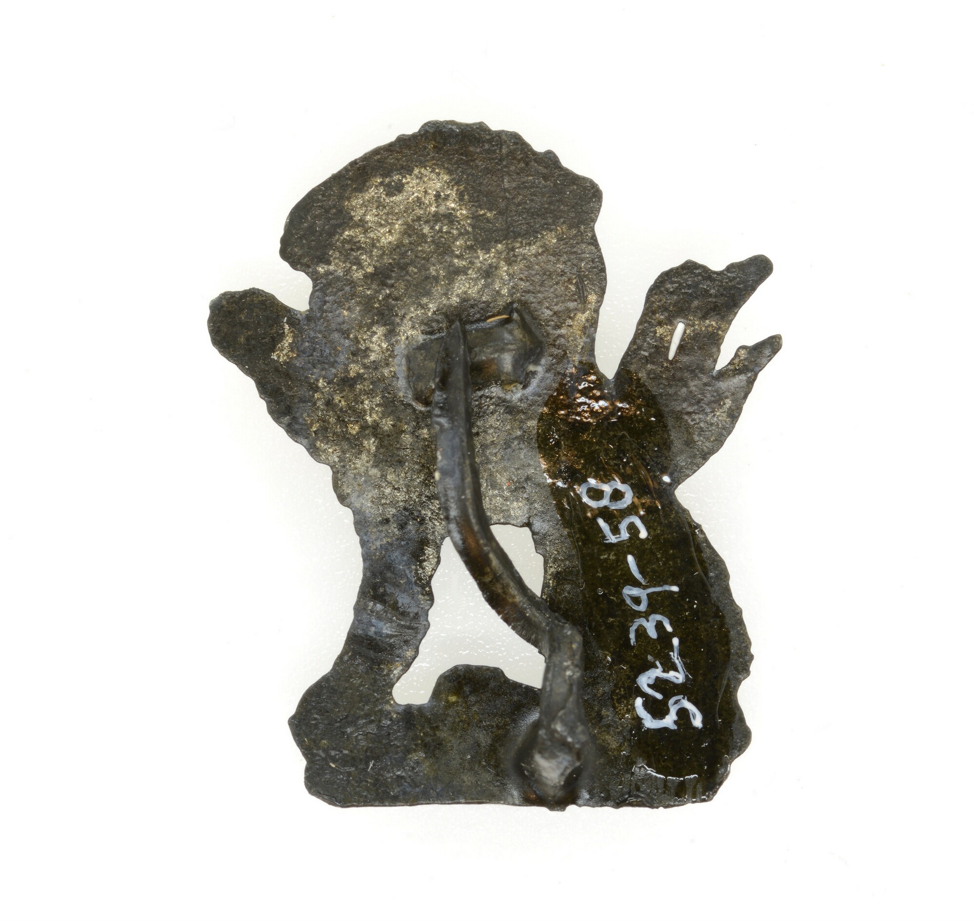 Pelgrimsinsigne; voorstelling van een leeuw; speld aan achterzijde