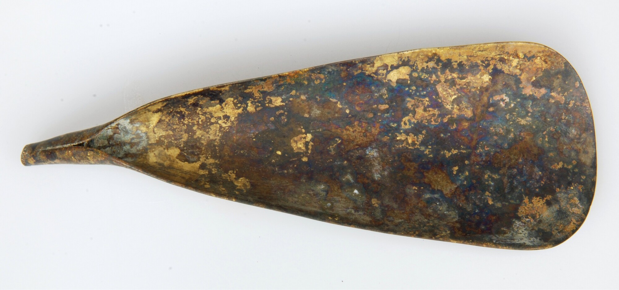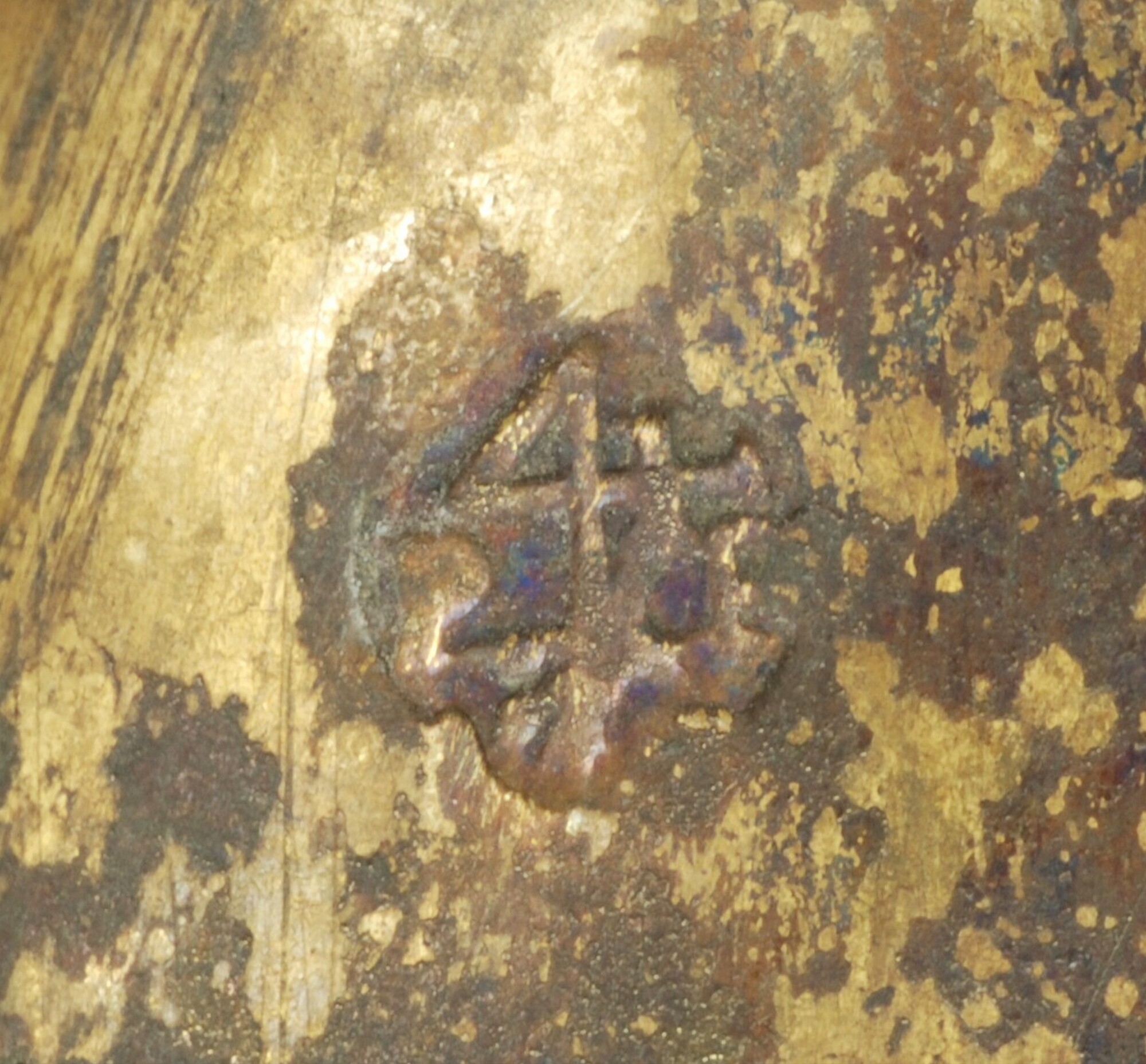 Trechter; medisch/scheikundig instrument?; schoenlepelvormig instrument dat eindigt in een buisje. Op de achterzijde zijn enkele lijnen aangebracht die mogelijk een schaalverdeling vormen. Op de voorzijde is het object gemerkt met een klein stempeltje met huismerk en de initialen Pe,PF of PP