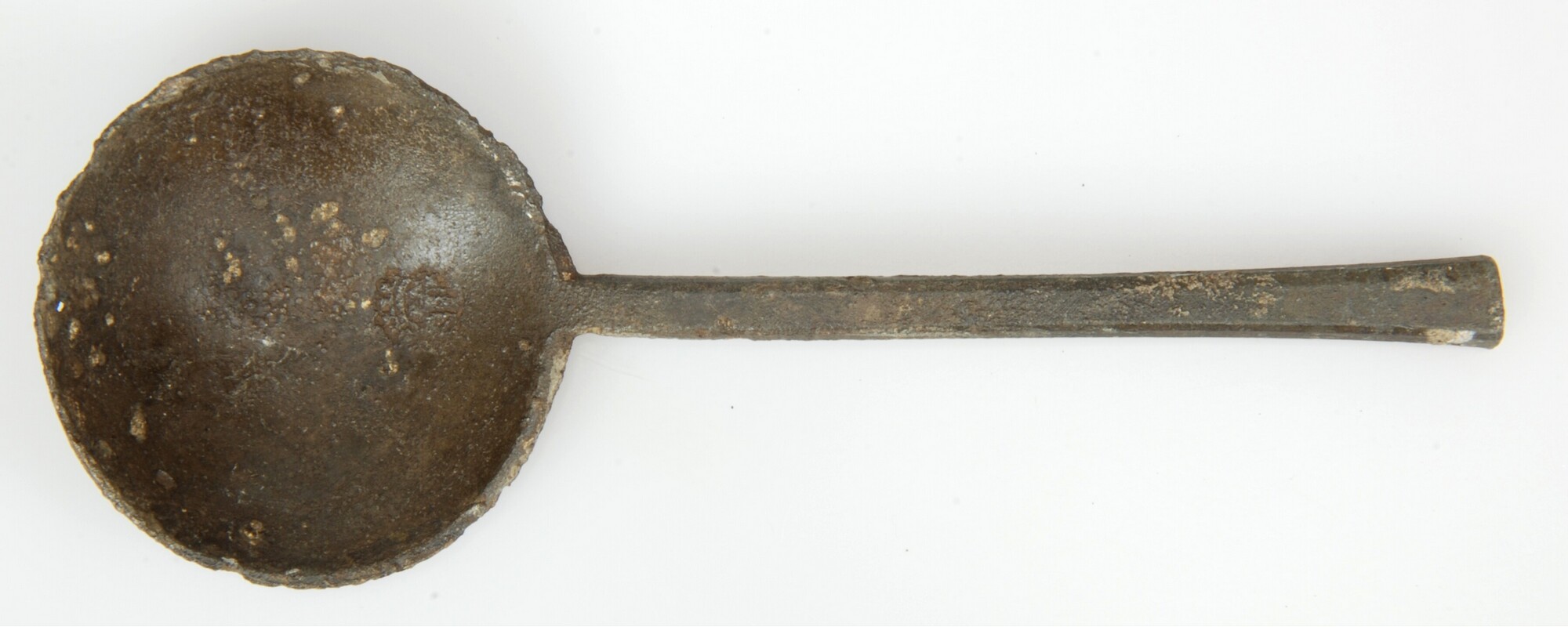 Lepel; sn-lep; ronde bak en steel zeshoekig in doorsnede; merkteken in bak