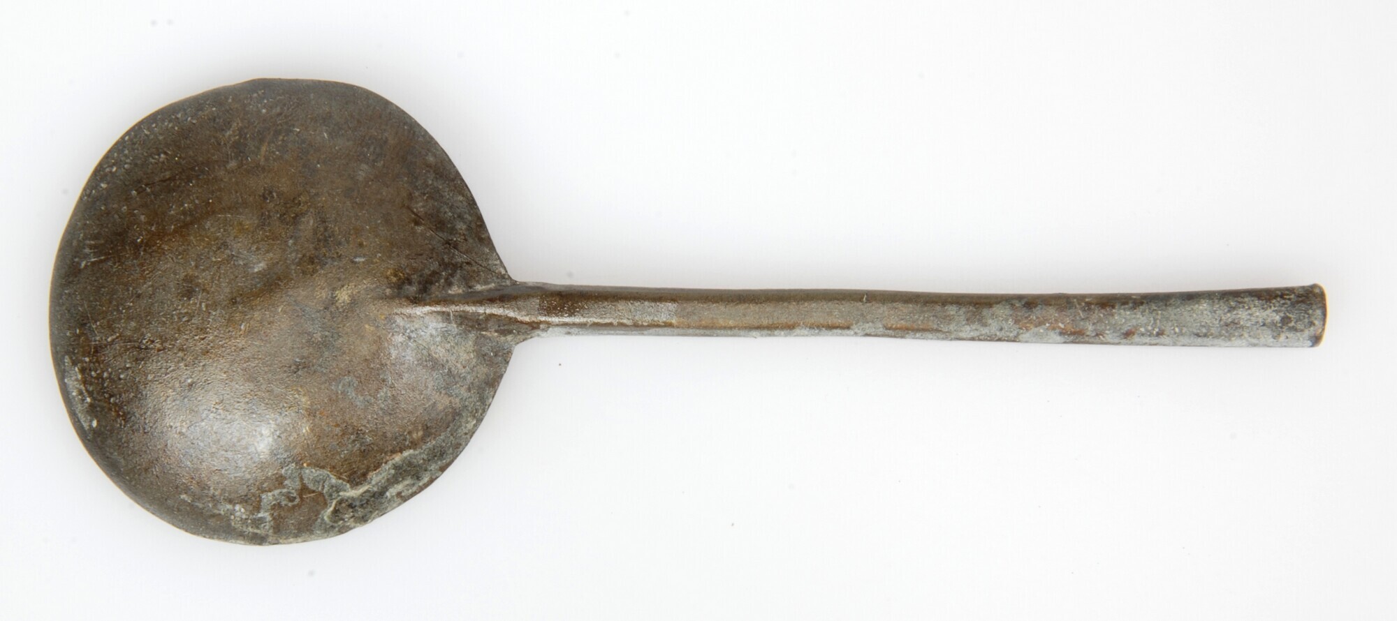 Lepel; sn-lep; ronde bak en platte steel zeshoekig in doorsnede; merkteken in bak