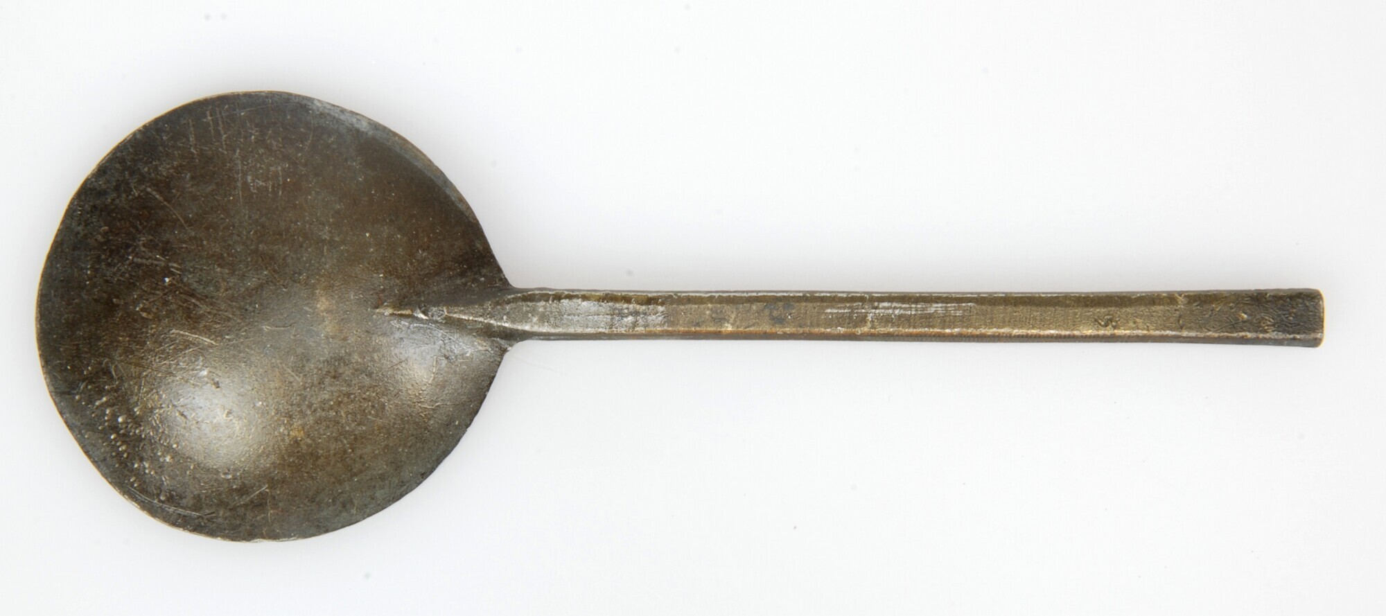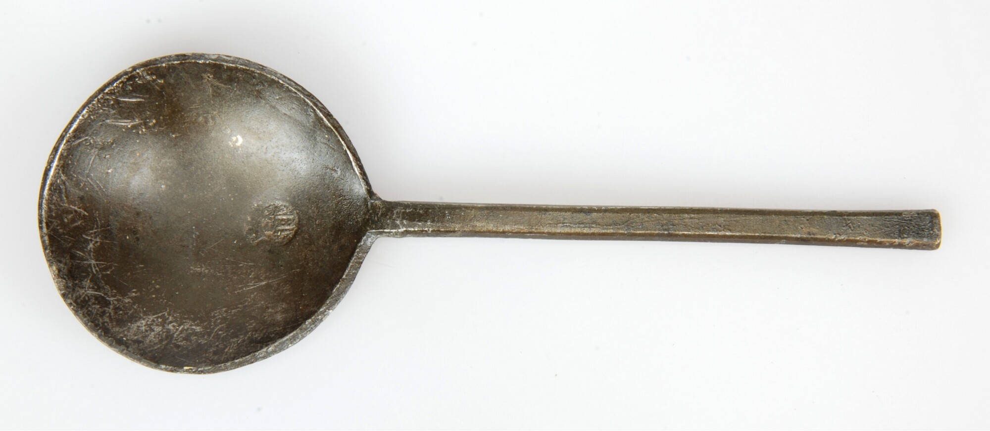 Lepel; sn-lep; ronde bak en platte steel zeshoekig in doorsnede; merkteken in bak