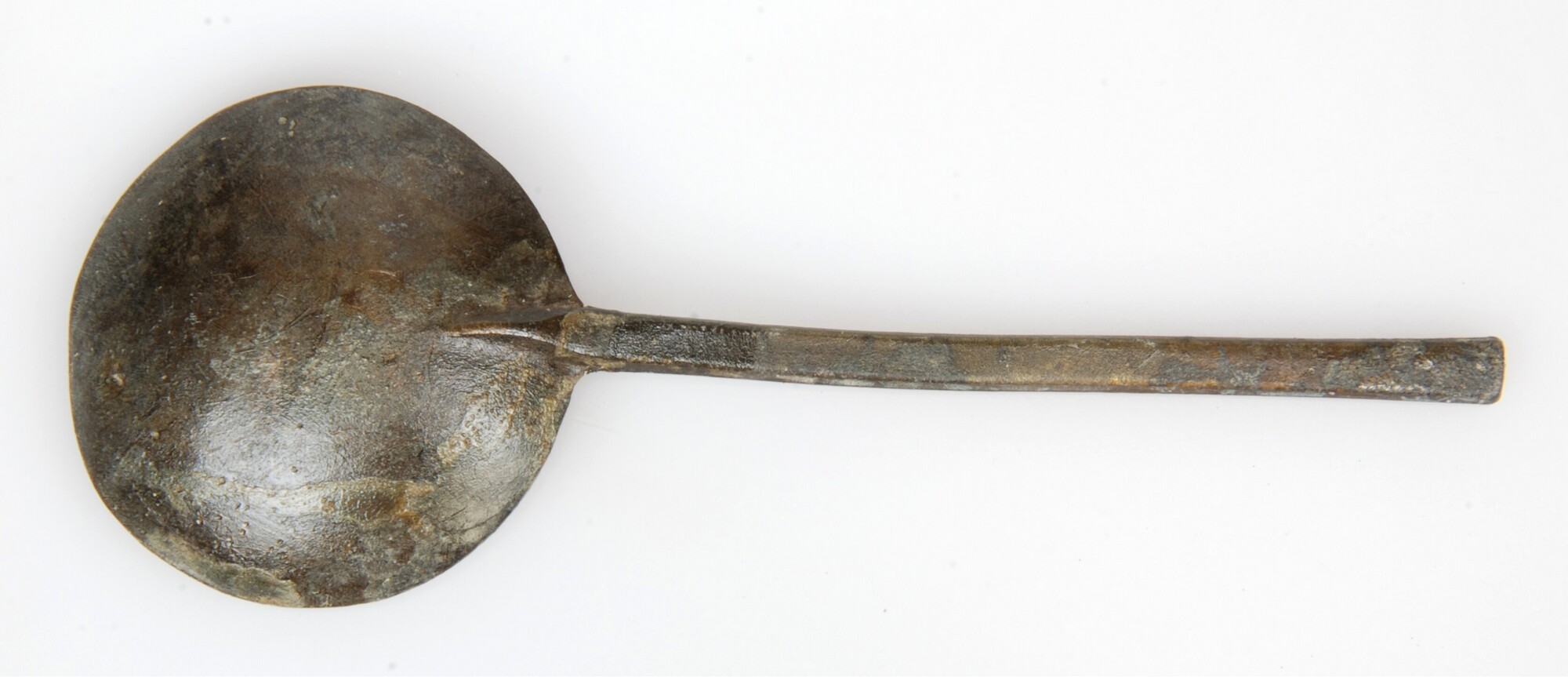 Lepel; sn-lep; ronde bak en platte steel zeshoekig in doorsnede; merkteken in bak