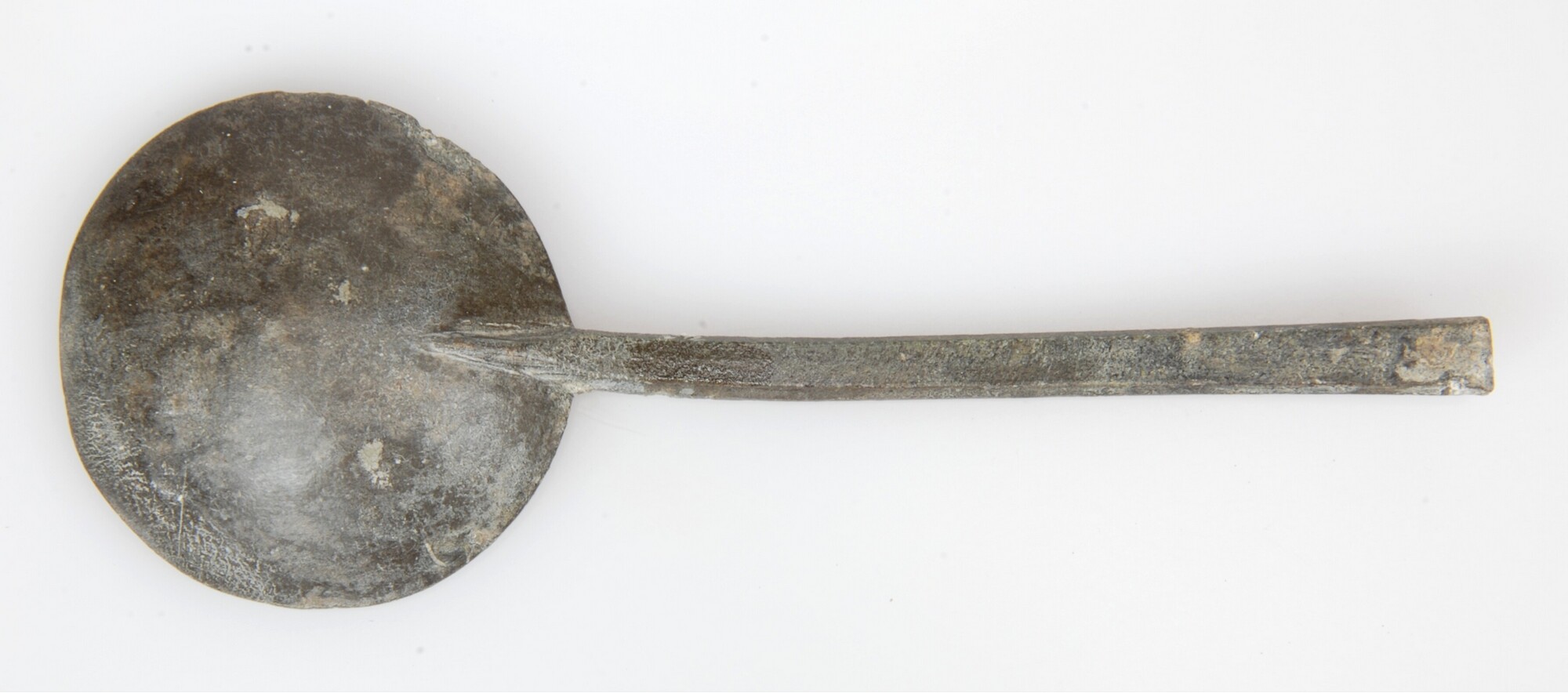 Lepel; sn-lep; ronde bak en platte steel zeshoekig in doorsnede; merkteken in bak
