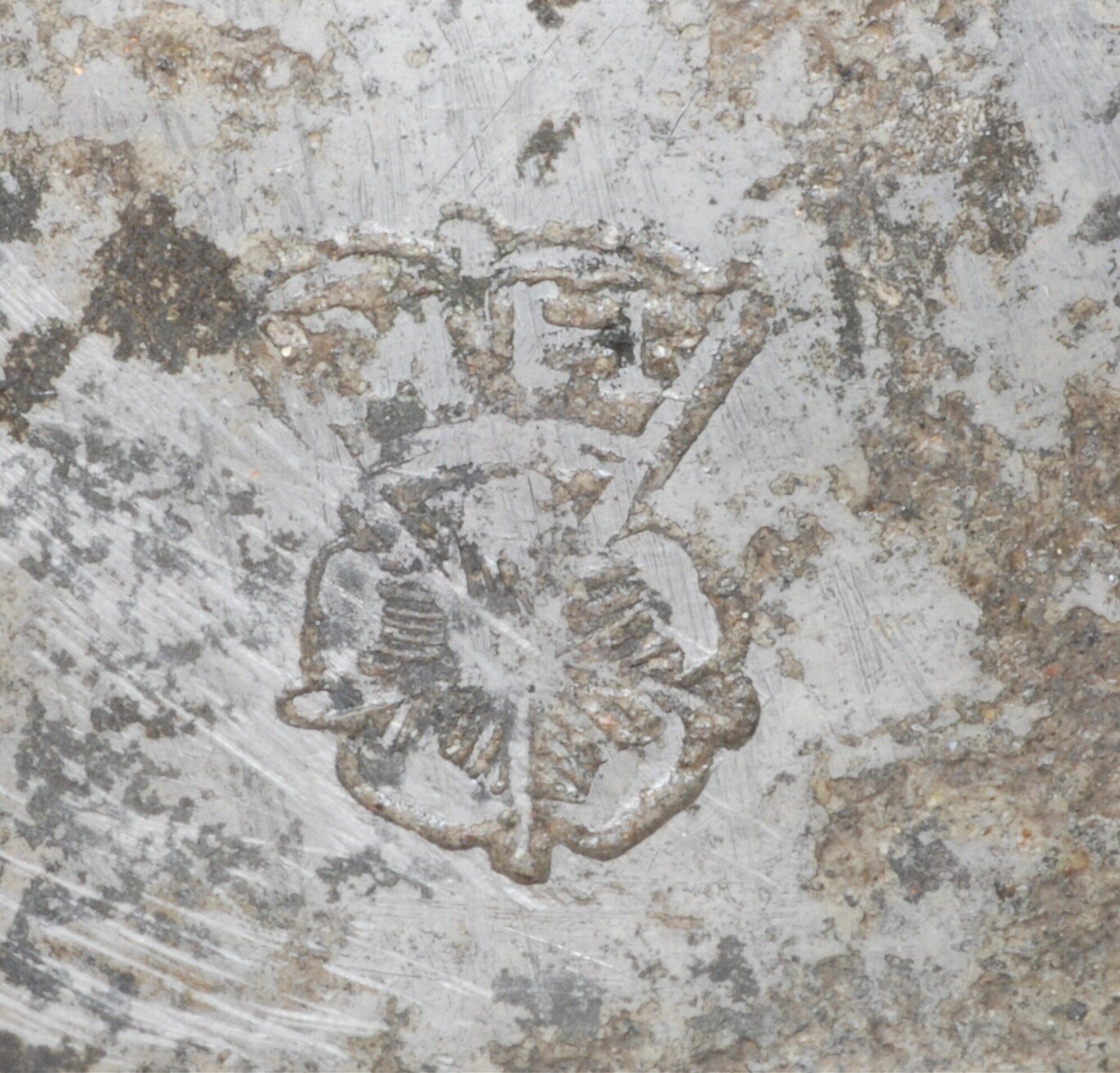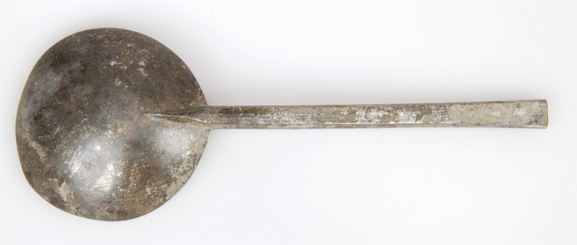 Lepel; sn-lep; ronde bak met naald en platte steel zeshoekig in doorsnede; merkteken in bak