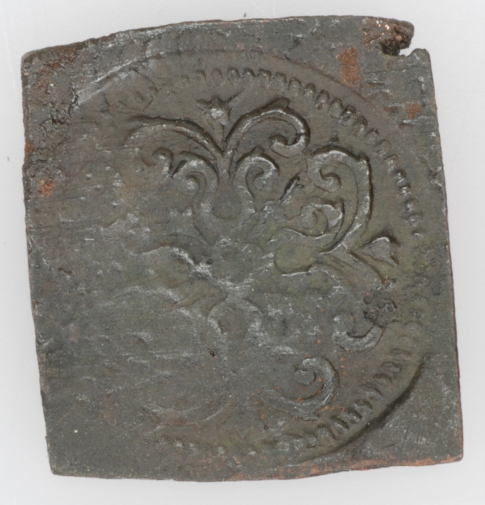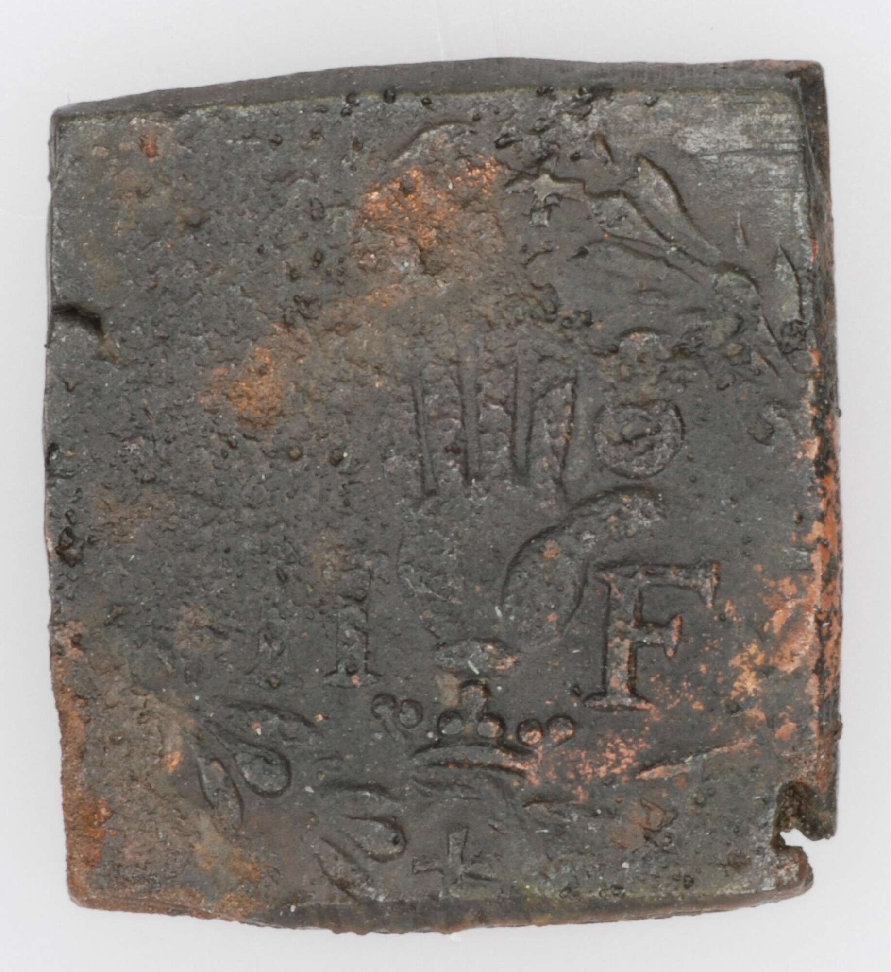 Muntgewicht; vz.: wapen van Antwerpen (open hand) met aan weerszijden de letters H en F (Hans Fonck); kz.: Brabantse kroon; gewicht: 2.9 gram; herkomst: Antwerpen; vondstomstandigheden: stort/detectorvondst