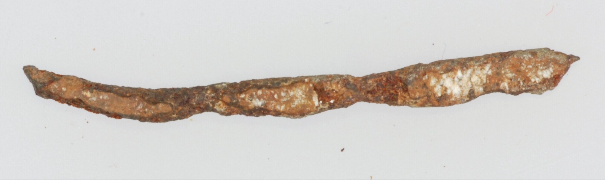 Staafje; fragmentje zilverafval dat verbogen is; datering in Romeinse Tijd onzeker