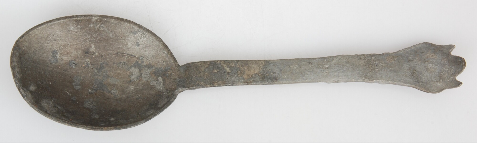 Lepel; ovale bak en platte steel met pied de biche (breekijzer-vorm)
