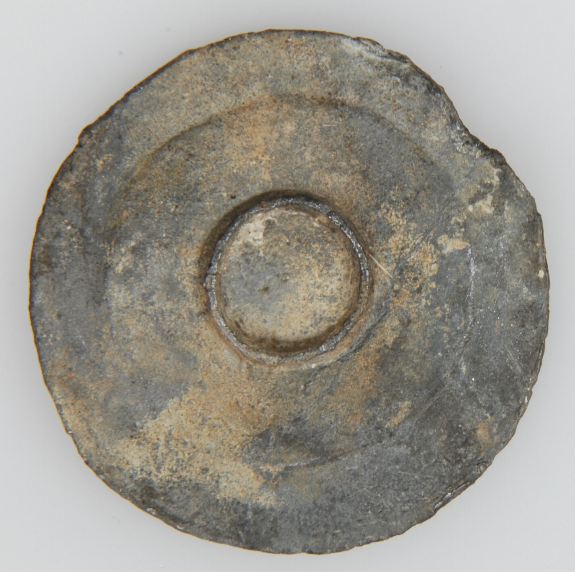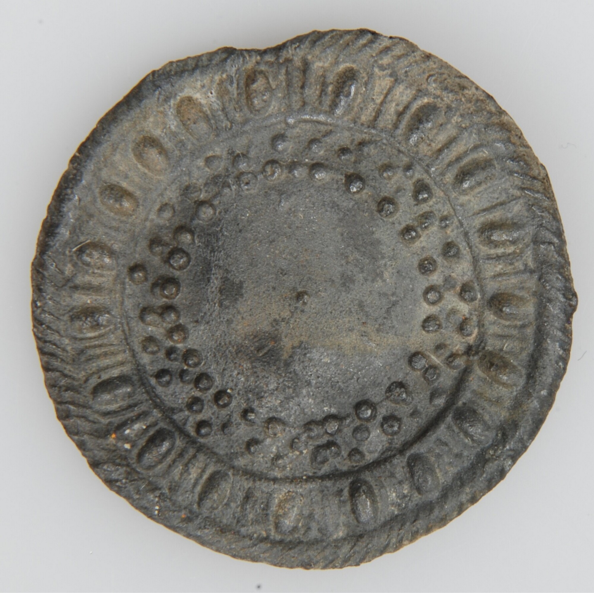 Miniatuur bord; op de voorzijde langs de rand ''touwversiering'' en puntversiering; standring