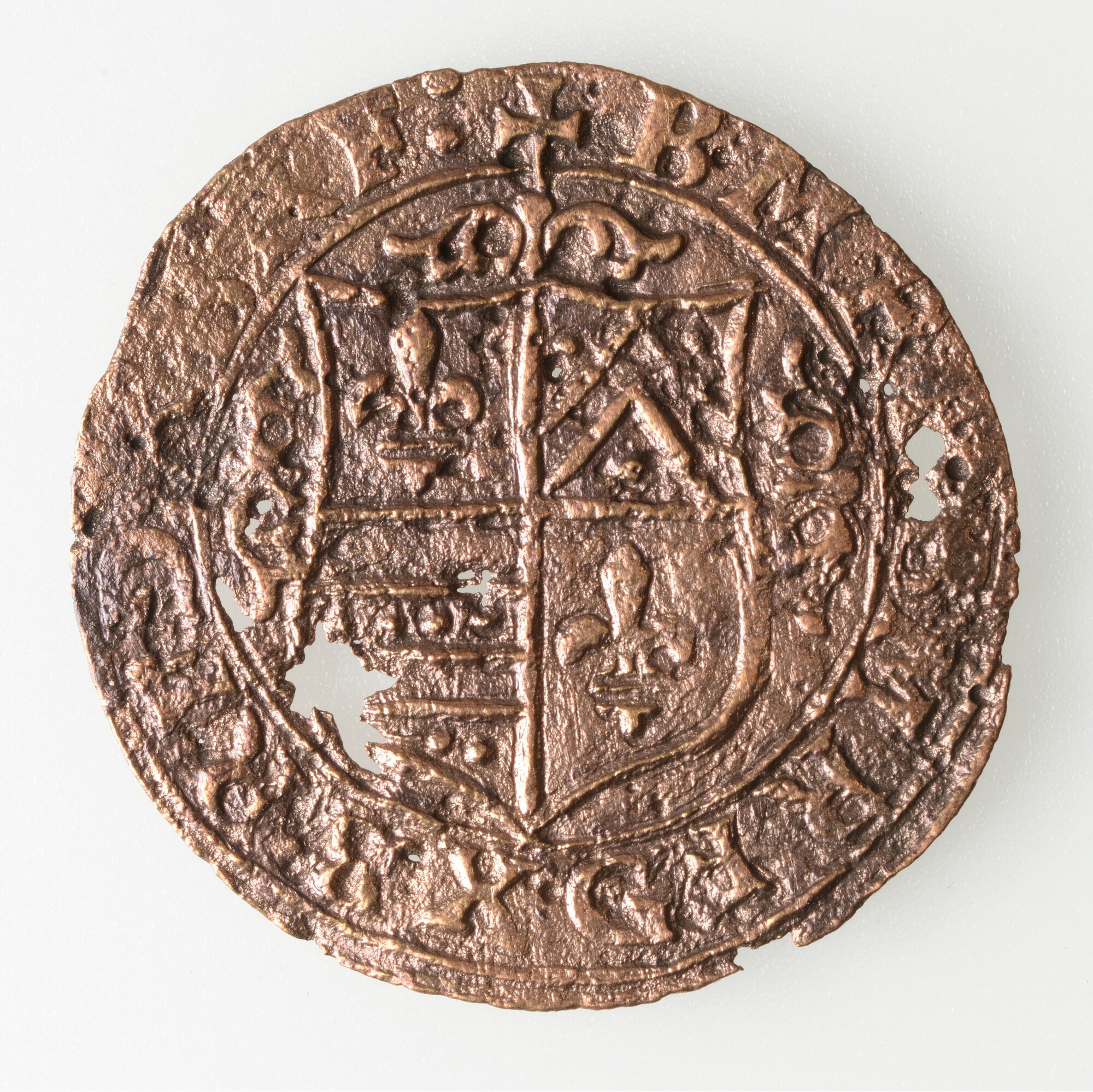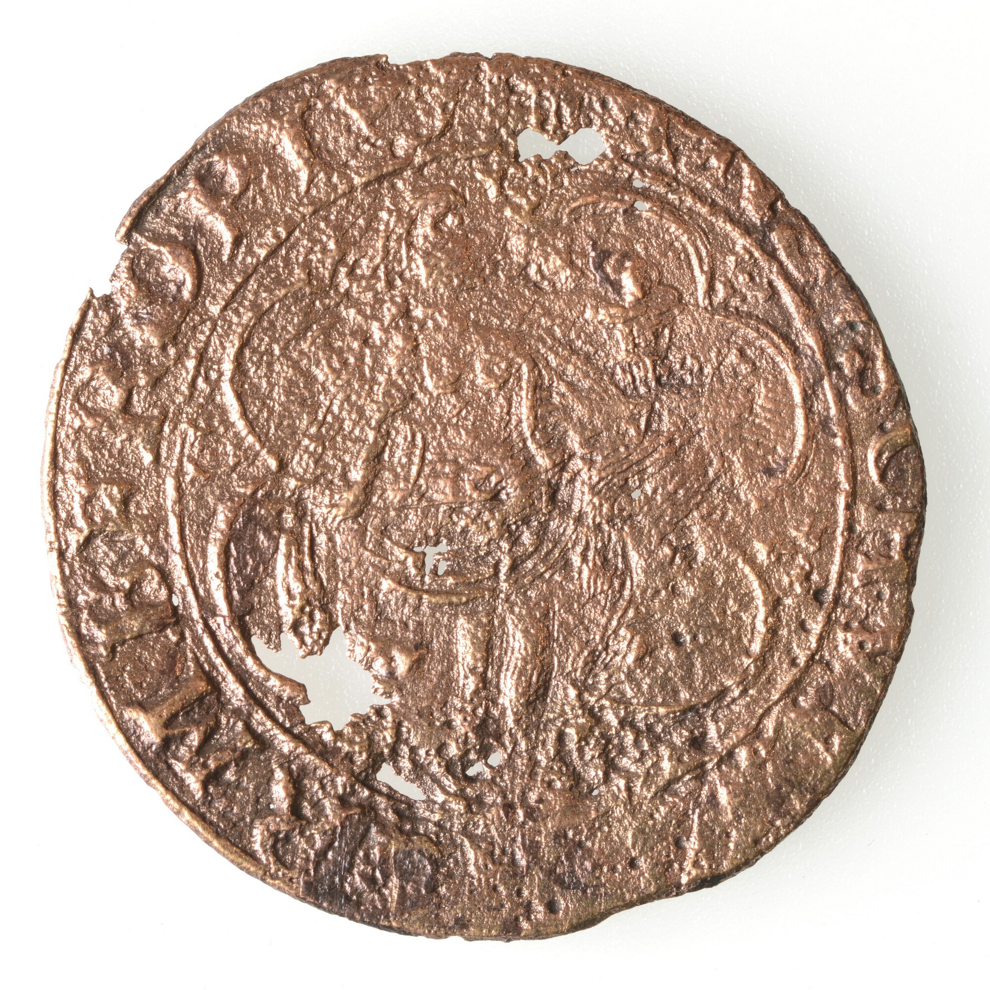 Rekenpenning Neurenberg; vz.: fantasiewapenschild met rondom een pseudorandtekst; kz.: gesluierde vrouw met een randtekst(NU)NMBERG; gewicht: 2.12 gram