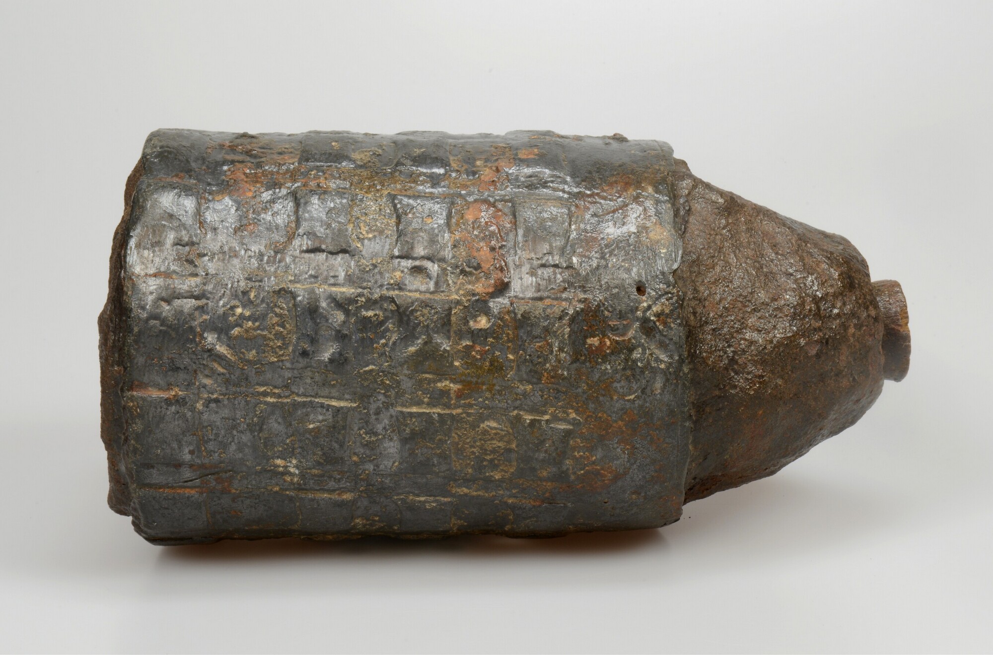Loodmantel granaat; zeer zware gietijzeren granaat met een loden mantel; Wieringermeer, vindplaats onbekend