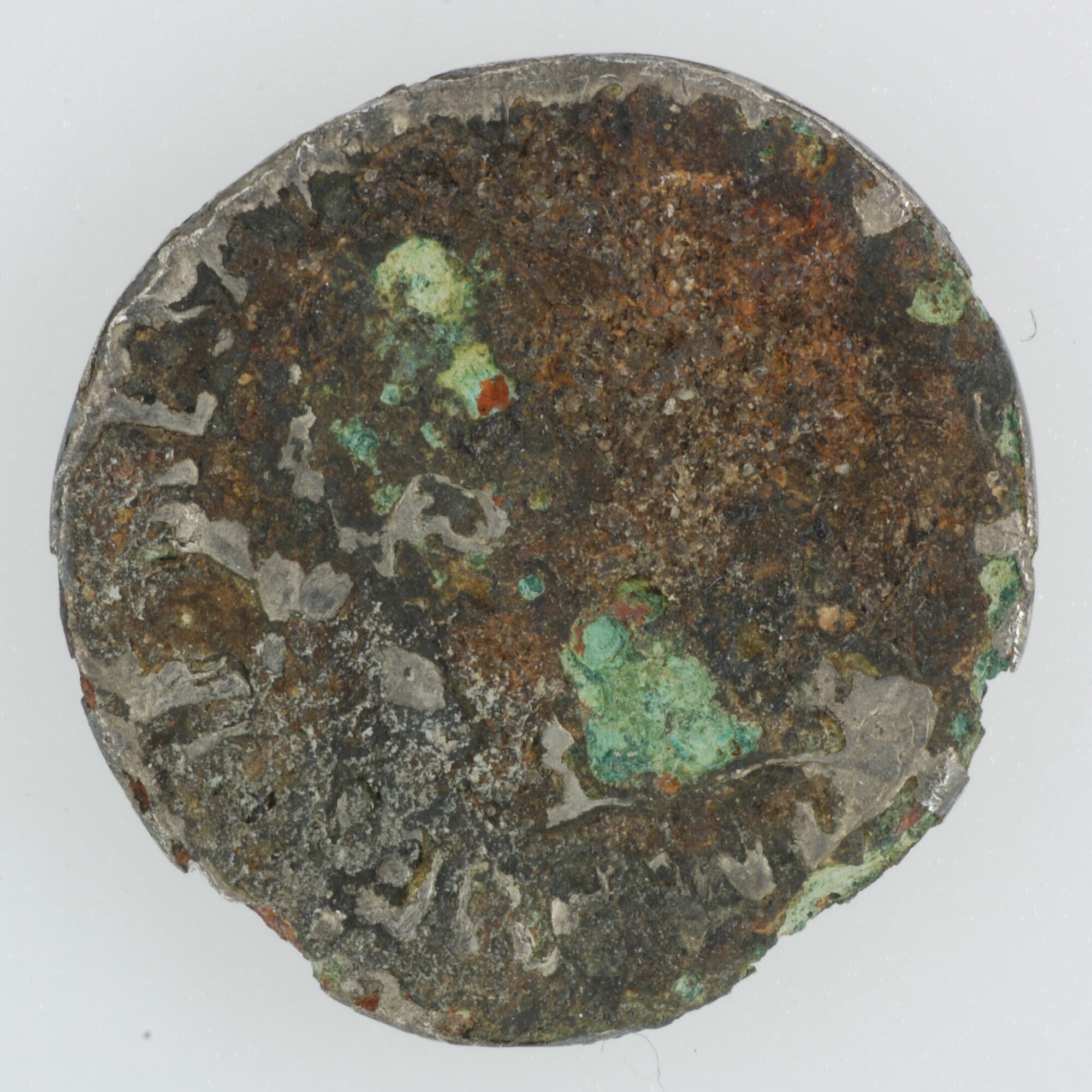 Denarius; Romeinse Keizerrijk; Nerva (96-98); vz.: hoofd NERVA A[...]; kz.: [...], staande personificatie; gewicht: 2.01 gram; muntplaats: Rome; referentie: -; de munt is in te slechte conditie om een sluitende determinatie te geven; brons geplateerd