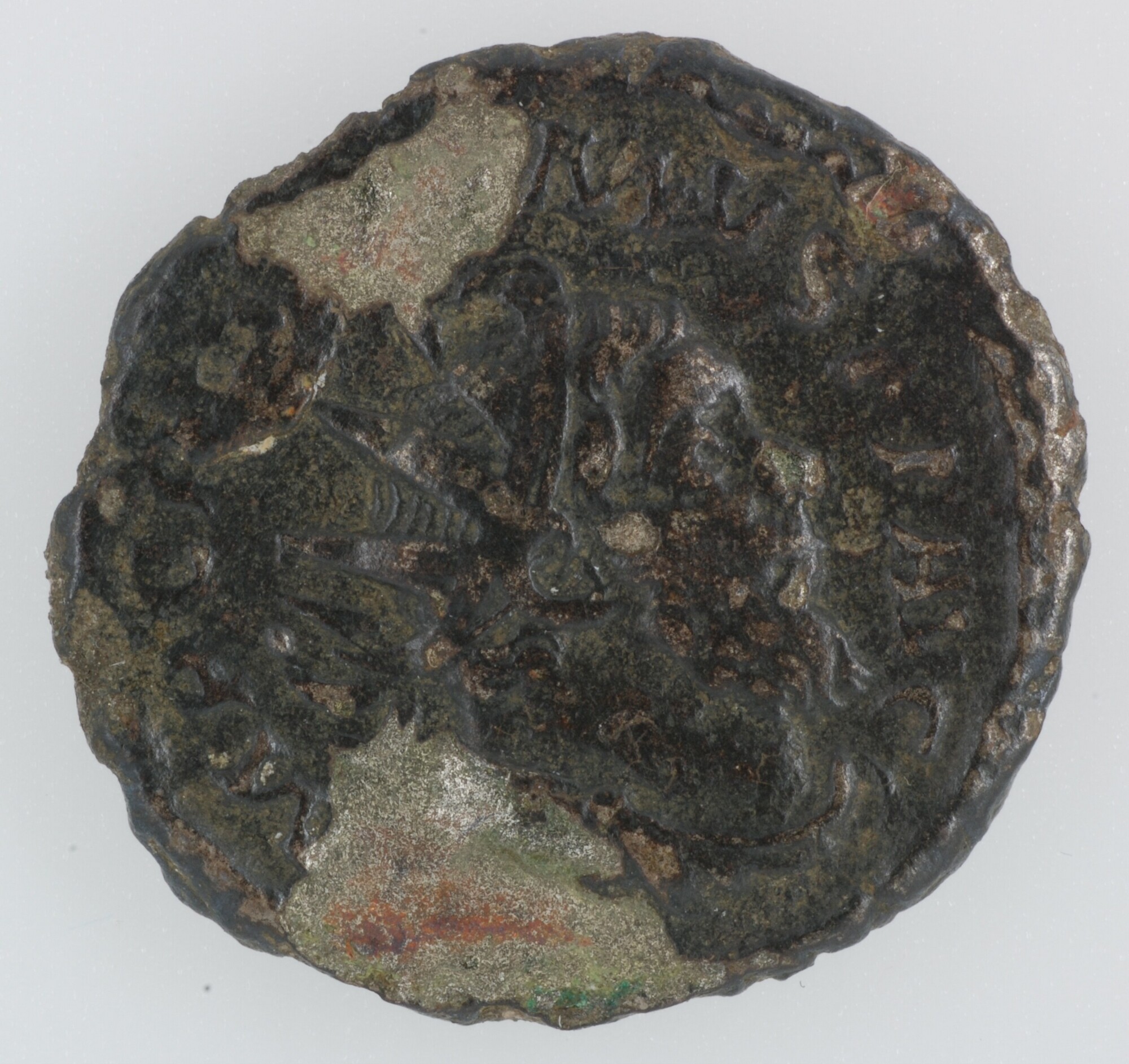 Antoninianus; Romeinse Keizerrijk; Postumus (260-269); vz.: [I]MP C P[OSTV]MVS P F AVG, gedrapeerde en geharnaste buste naar rechts, stralenkroon op zijn hoofd; kz.: [HERC PACIFERO], naar rechts staande Hercules, een olijftak en knots vasthoudend; muntplaats: Lyon?; gewicht: 2.98 gram; referentie: RIC 67, Sear 10946, RSC 101