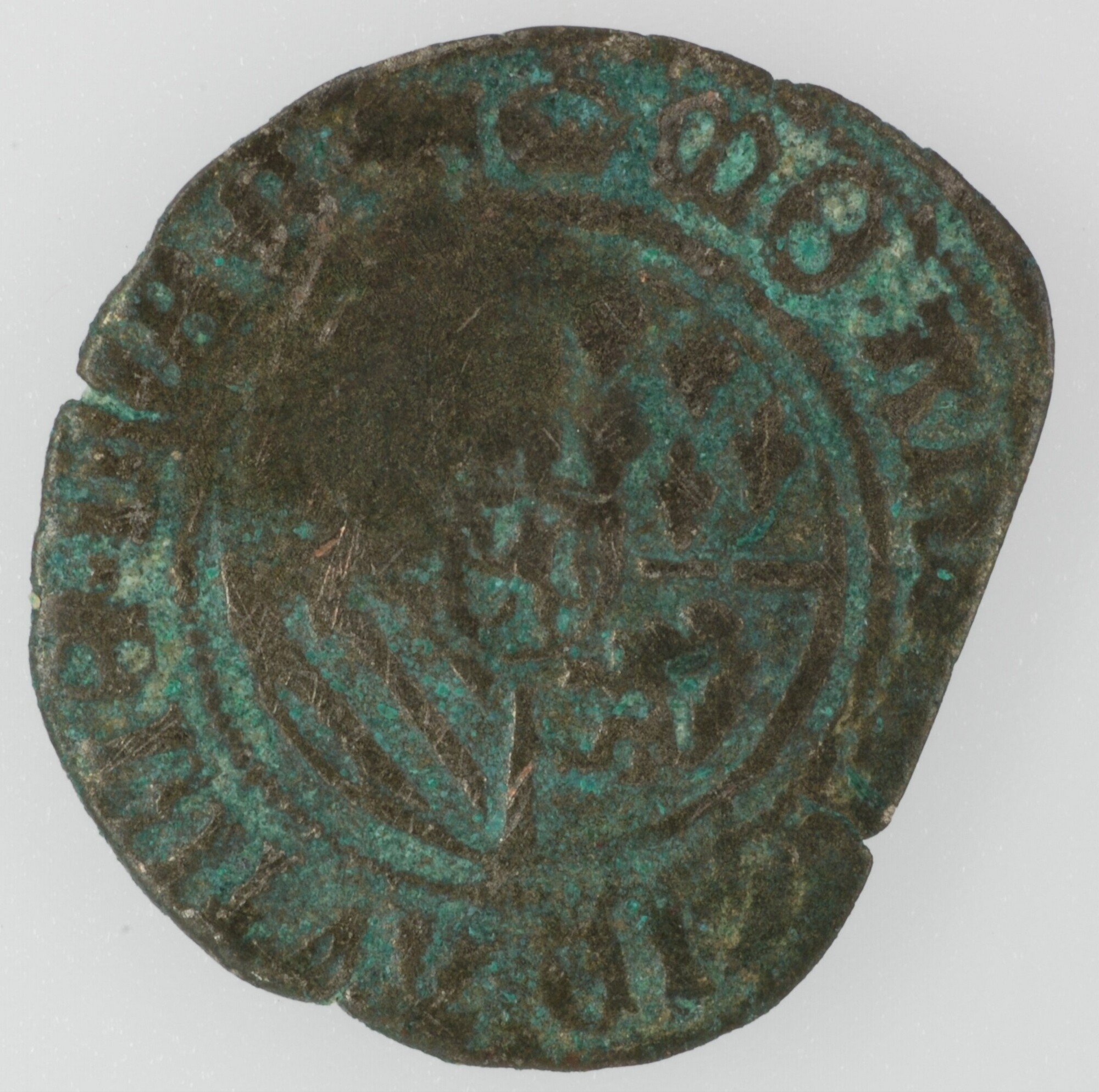 Halve groot; Vlaanderen Graafschap (862-1795); Karel V (1506-1555); vz.: wapen over gehele veld binnen parelrand, met omschrift (kroon) MO•A[RG•A(•)CH]ID•AVTRIE•DVX•B; lang gevorkt kruis met 2 lelies en 2 leeuwen in de kwadranten, met omschrift S[I]T•NO / MEN[•DO / MINI]•B / ENE[D]; muntplaats: Brugge; gewicht: 0.92 gram; referentie: Gelder / Hoc 174-5b, vHoudt II 205.BG