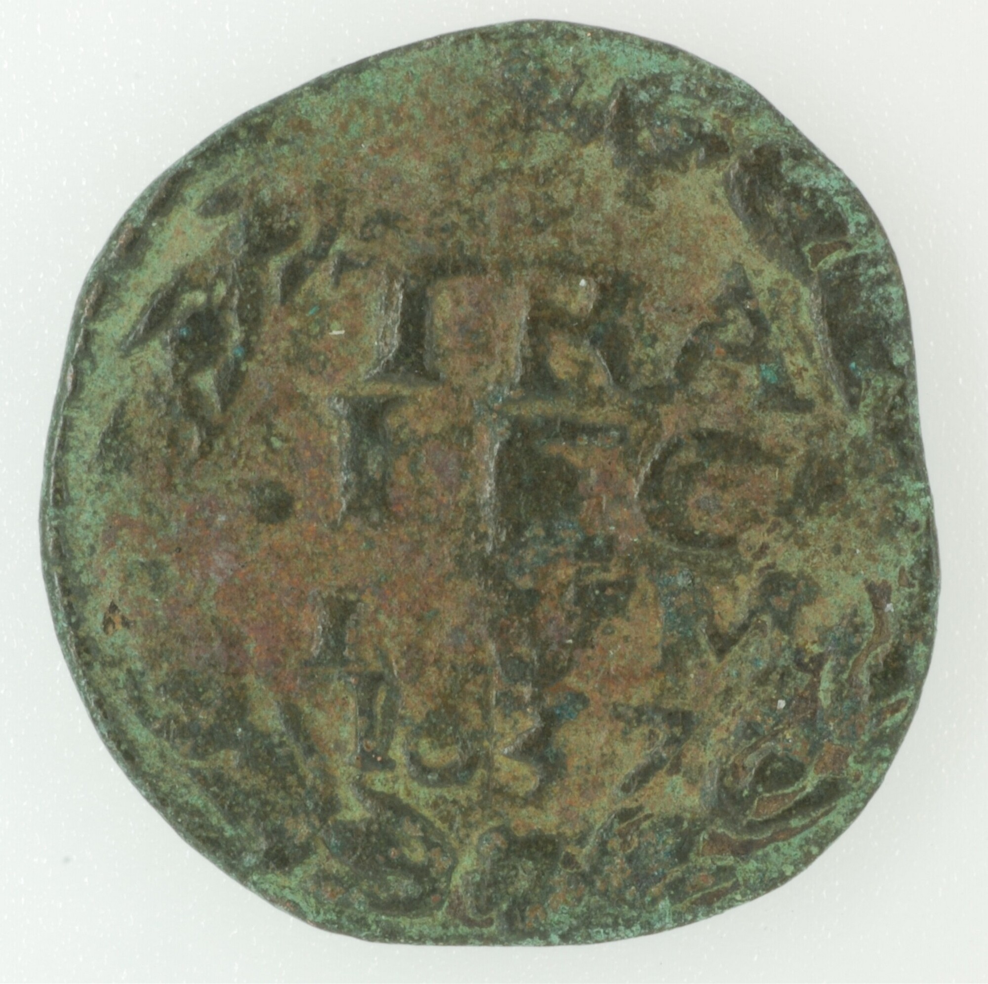 Duit; Utrecht Stad (1581-1795); vz.: in vier regels: TRA / IEC / TVM / 1637; kz.: gedamasceerd stedelijk wapenschild met rondom versiering; muntplaats: Utrecht; gewicht: 1.36 gram; referentie: Purmer / Wiel 5105, CNM 2.44.10