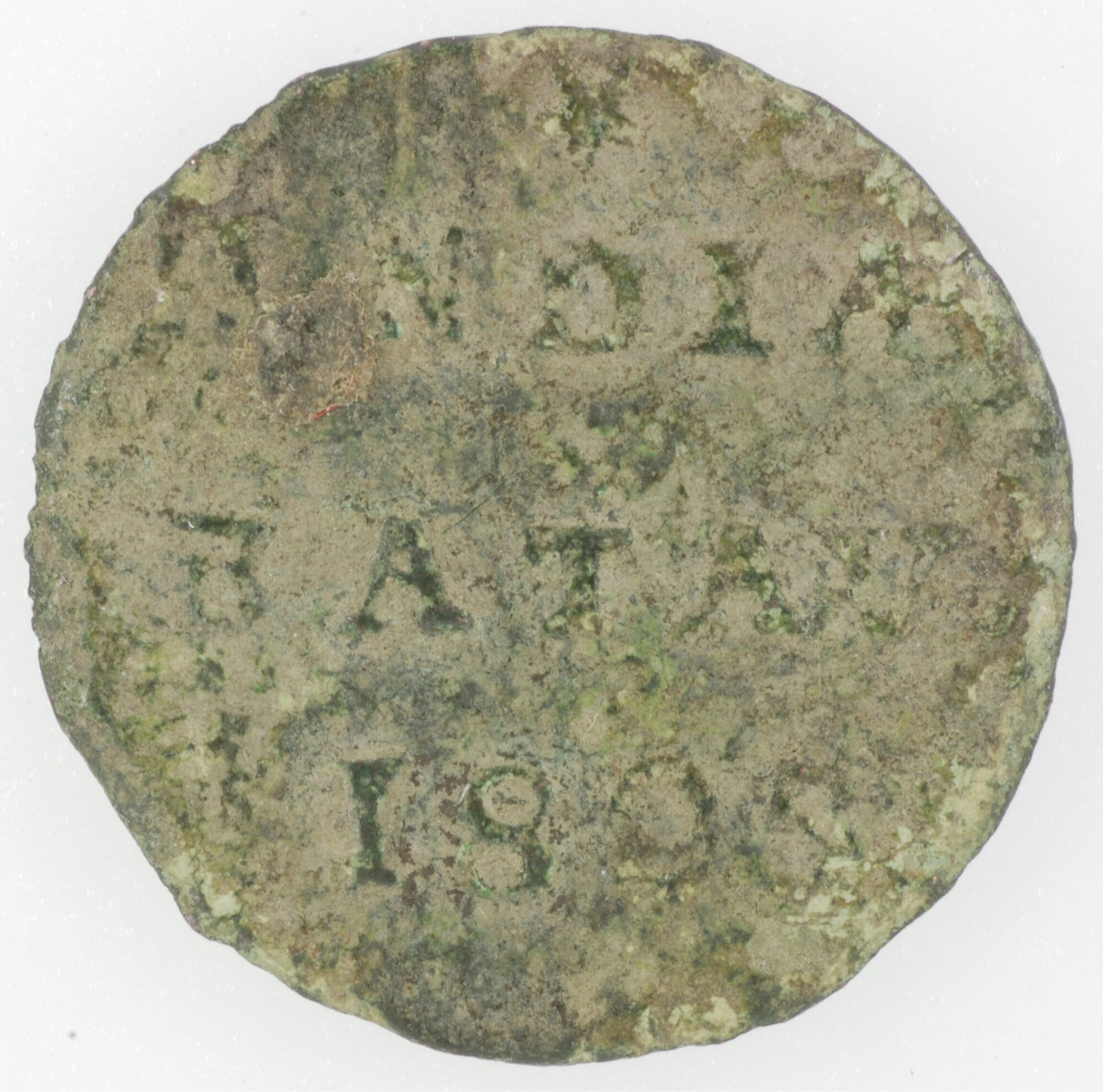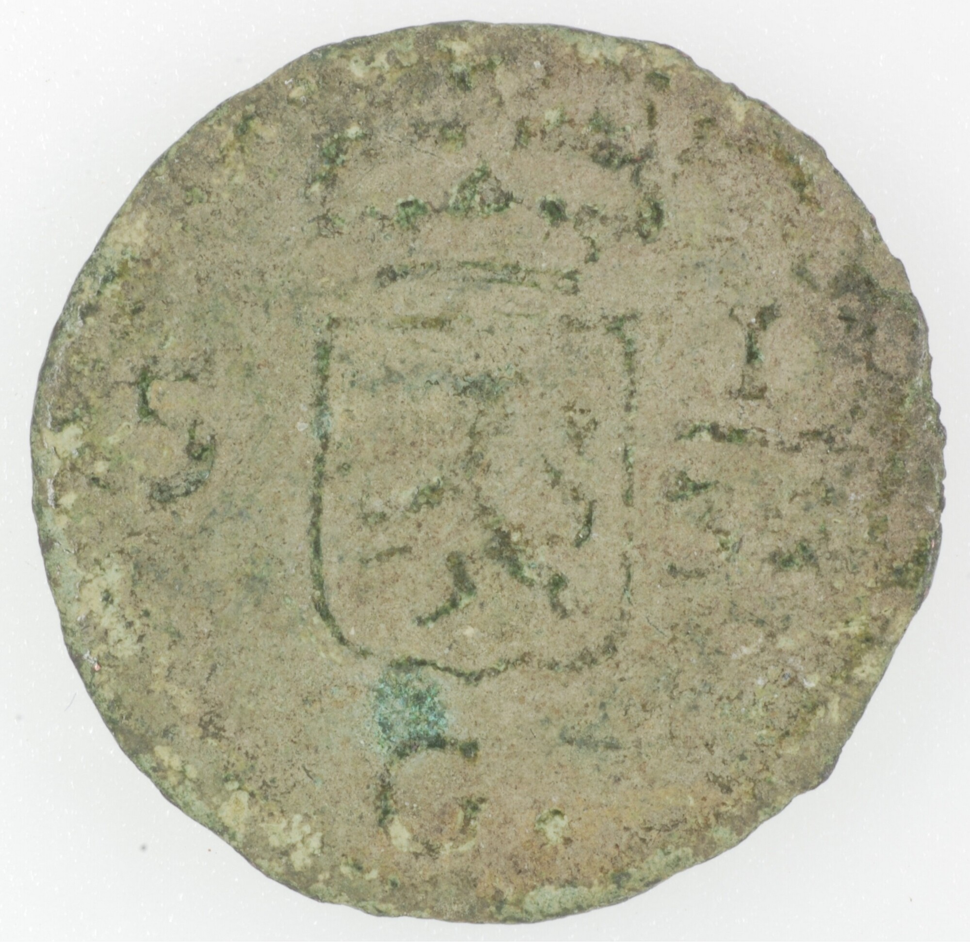 Duit; Nederlands-Indië; Lodewijk Napoleon (1806-1810); vz.: in vier regels: ster / INDIAE BATAV: / 1808; kz.: gekroond wapen van Nederland met ter weerszijden 5 – 1/32 en G• eronder; muntplaats: Hoorn; gewicht: 1.29 gram; referentie: Scholten 562