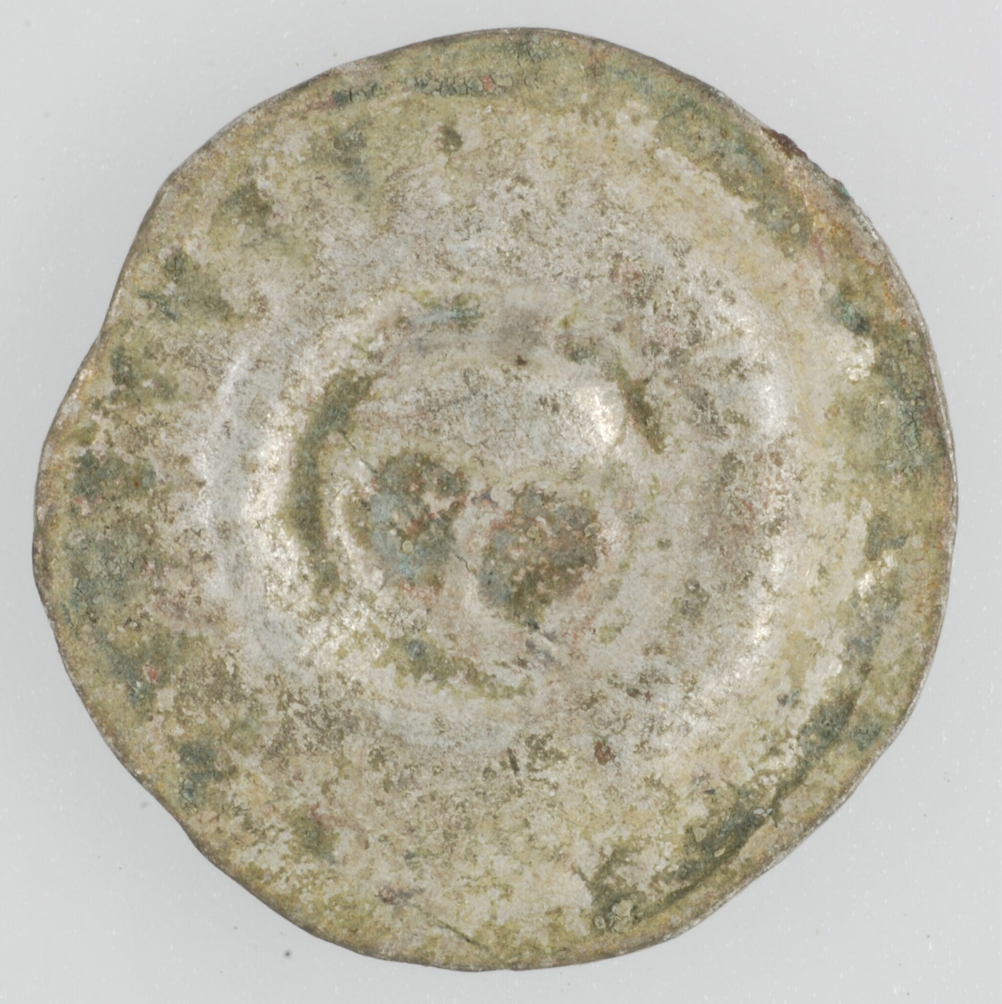 Hohlpfennig; Duitse Rijk; Bisdom Meissen; Elisabeth, weduwe van Friedrich I (1323-1359); letter E in het midden binnen cirkel en omschrift [G O T A]; muntplaats: Meissen; gewicht: 0.38 gram; referentie: Krug 50