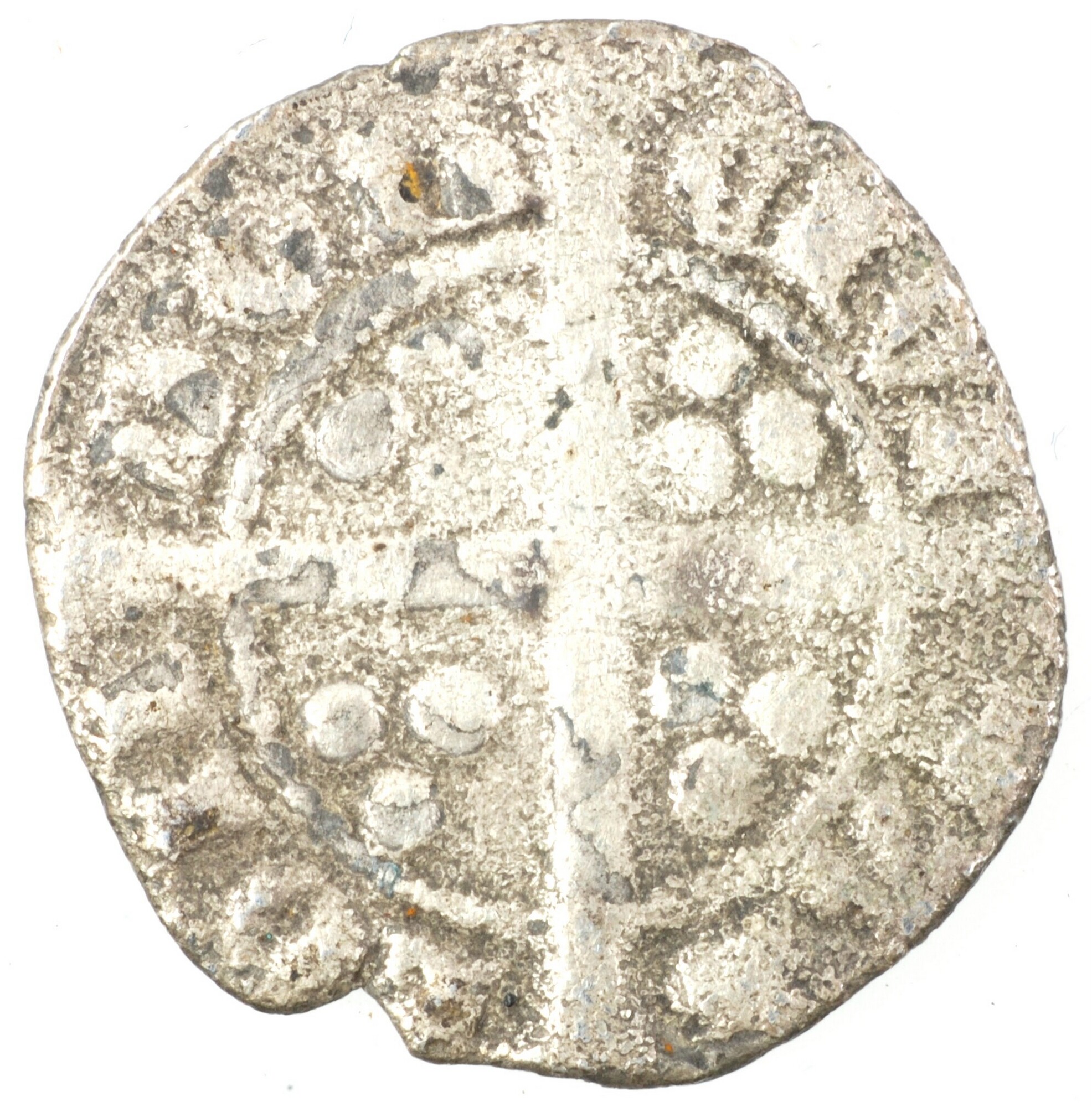 Penny; Engeland; Edward I (1272-1307); vz.: aanziende buste met kroon binnen parelcirkel, met omschrift [+ED]W [R] ANGL DNS HYB'; kz.: lang gevorkt kruis met in elke kwadrant drie punten binnen parelcirkel, met omschrift CIVI / TAS / LON / DON; muntplaats: Londen; gewicht: 1.09 gram; referentie: Seaby 1383 of 1384; NUMIS 1013748