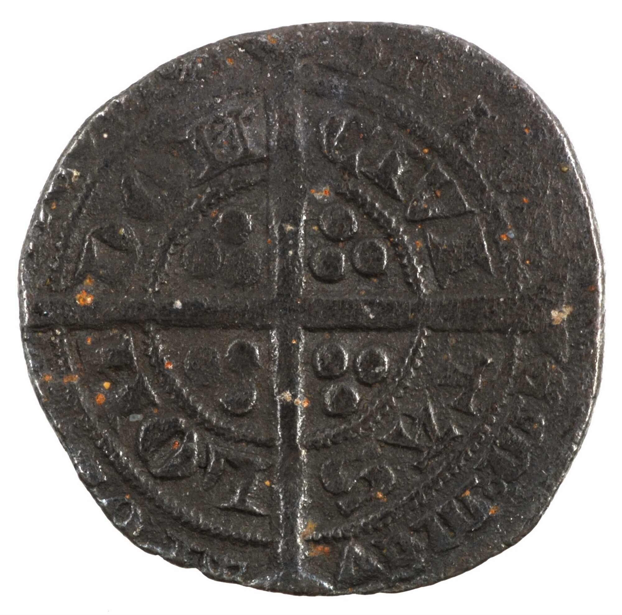 Groat; Engeland; Edward III (1327-1377); vz.: aanziende buste met kroon binnen een achtpas en parelcirkel, met omschrift +EDWAR[DoRAoEXoNGLoFRA]NCoDoHYB; kz.: lang gevoet kruis met omschrift binnenste rand CIVI / TAS / LON / DON, buitenste rand +PO[SVIo / DEVM].A / DIVTOR / EMoEVM; muntplaats: Londen; gewicht: 4.51 gram; referentie: Seaby 1563