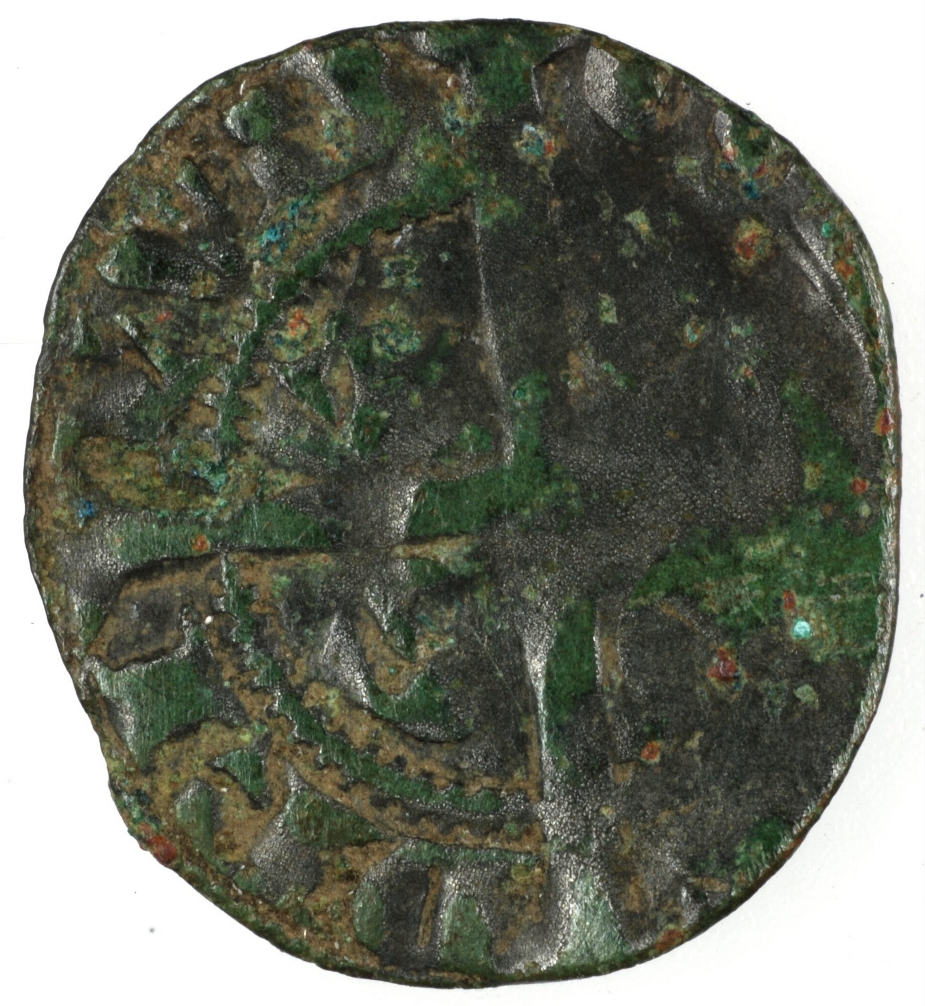 Mijt; Vlaanderen Graafschap (862-1795); Lodewijk I van Nevers (1322-1346); vz.: letter L tussen vier klavertjes, met omschrift: +MONETA (twee andrieskruizen) GAN[DENSIS]; lang gevoet kruis met G / A / N / D in de kwadranten, met omschrift [LV]D / COM / F[LA / DRI]; muntplaats: Gent; gewicht: 0.68 gram; referentie: vHoudt 2587 I var (vier ...
