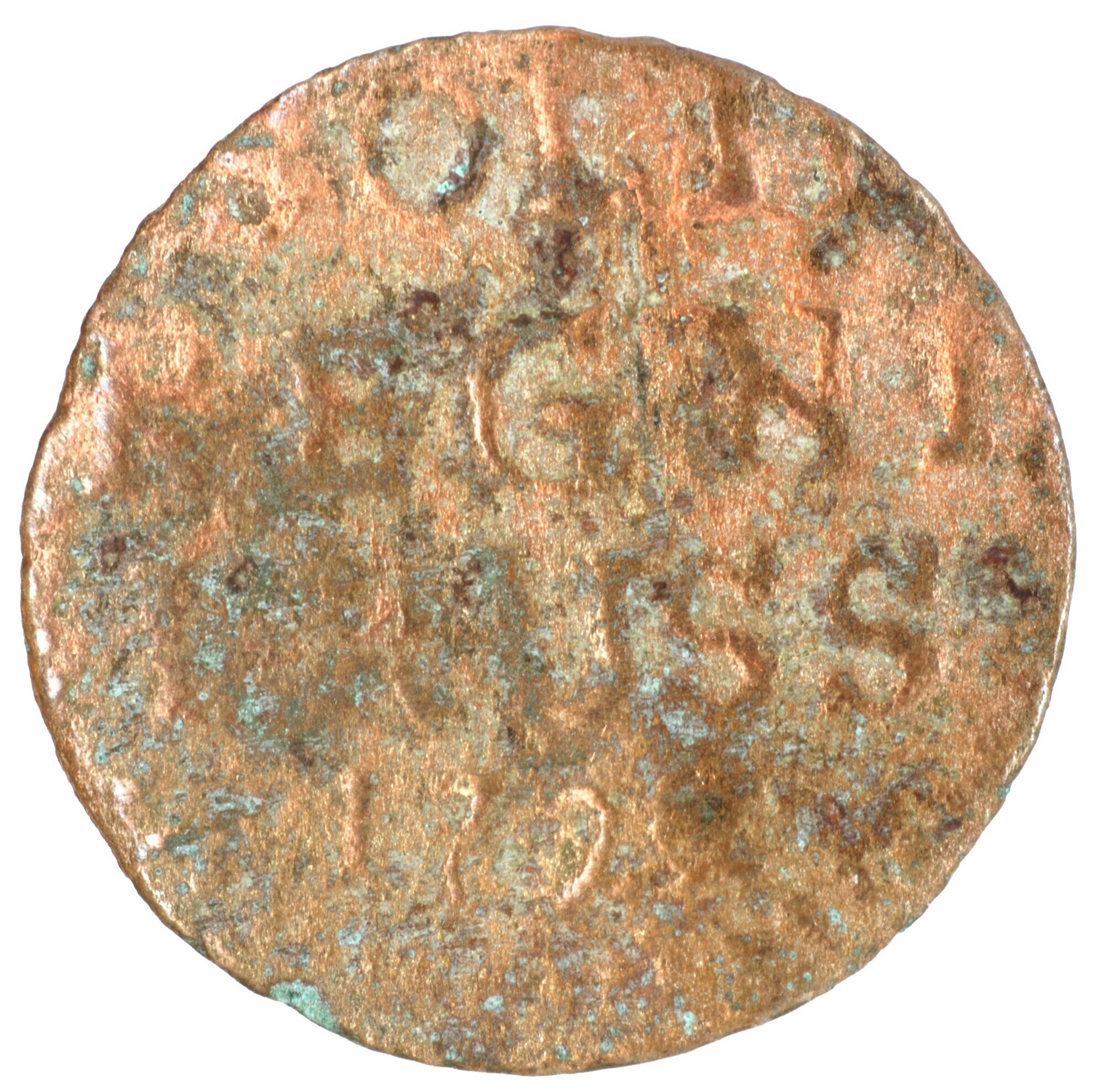 Schilling; Polen; Frederik Willem I van Pruisen (1713-1740); vz.: gekroond initiaal FWR met eronder C.G.; kz.: in vijf regels: (rozet) / SOLID / REGNI / PRUSS / 1722; muntplaats: Königsberg; gewicht: 0.59 gram; referentie: Schrötter 517