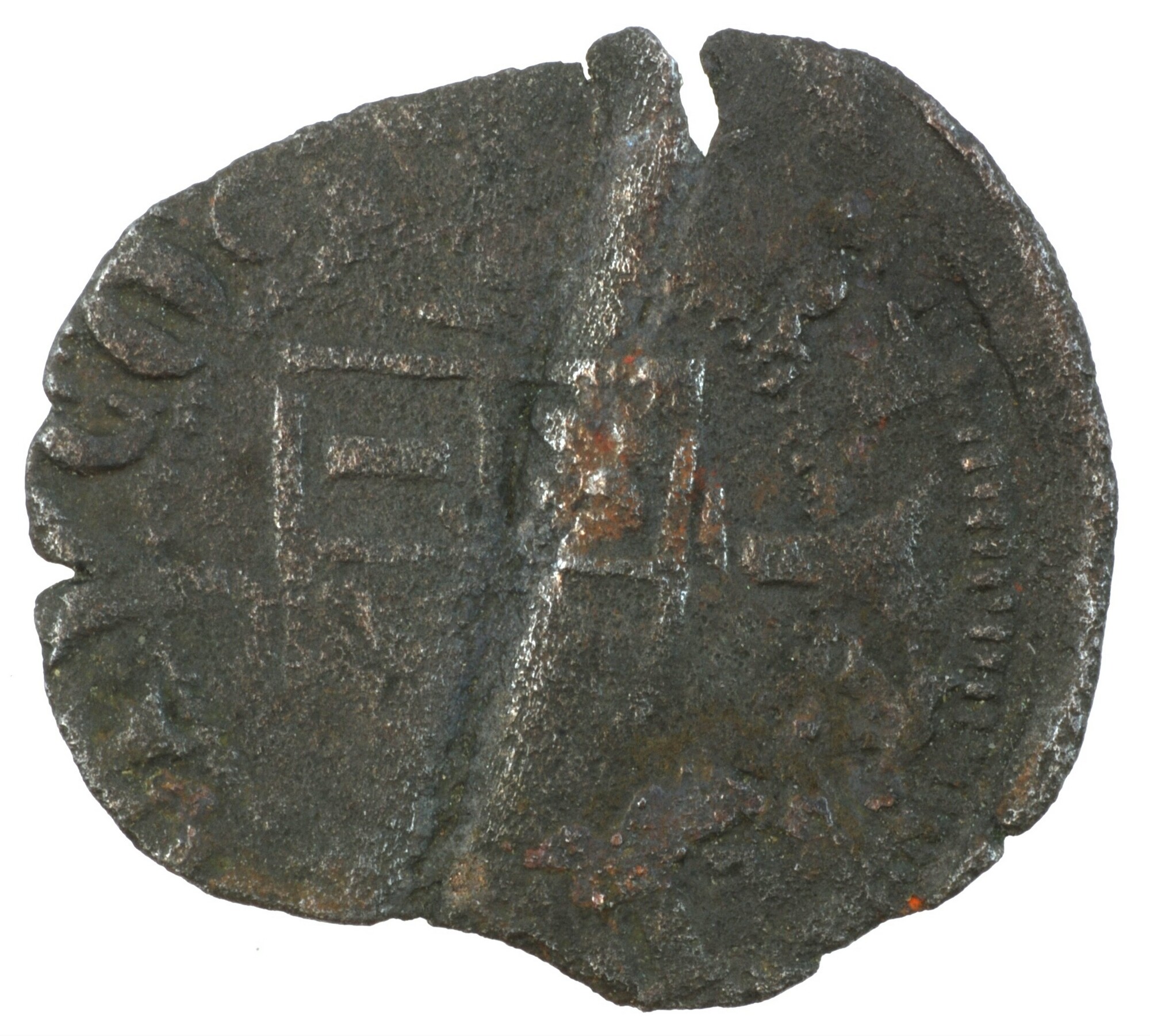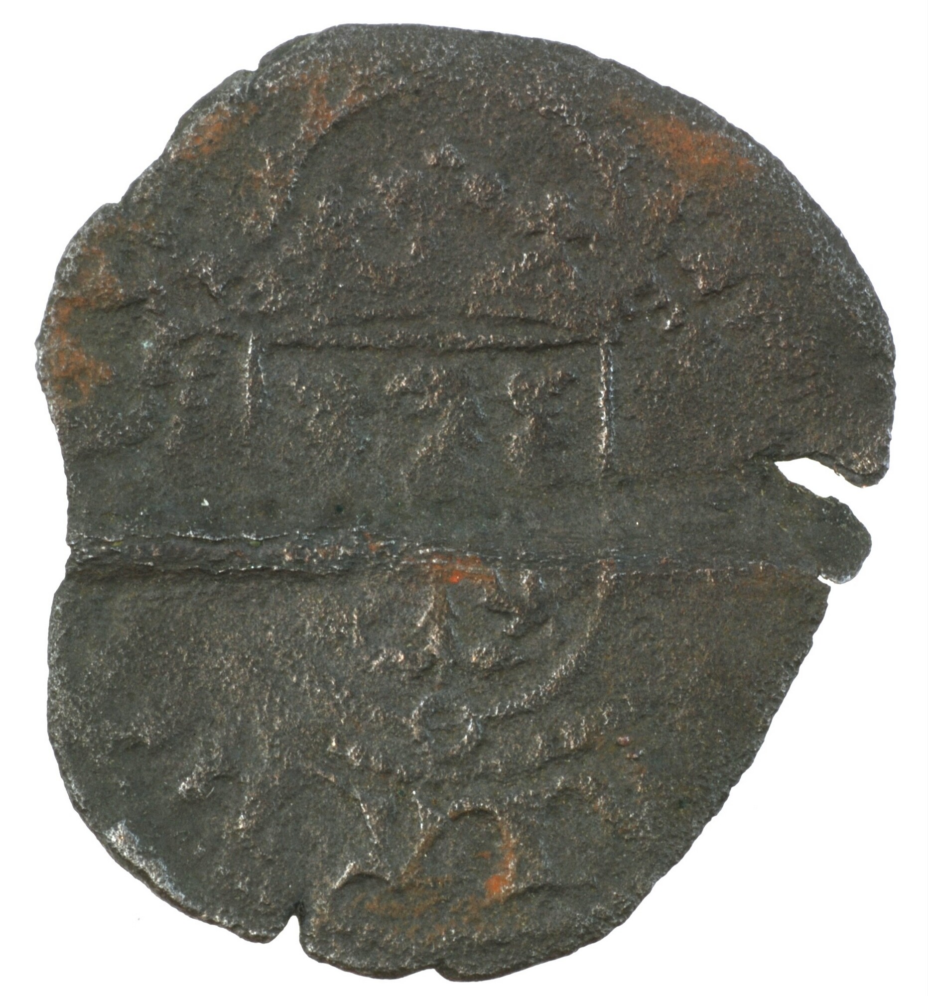 Hollandse penning; Holland Graafschap (1049-1581); Philips de Schone (1482-1506); vz.: gekroond wapenschild met naar links kijkende adelaar, met omschrift [MAXI]MIAoROoREX; kz.: Oostenrijks-Bourgondisch wapenschild op een lang gevorkt kruis binnen parelcirkel, met omschrift [P]HI / AED / [AV]T / COoH[(O)]; muntplaats: Dordrecht; gewicht: 0.42 gram; zeer zeldzaam; referentie: Gelder / Hoc 90-6 var (MAXIMIA in plaats ...