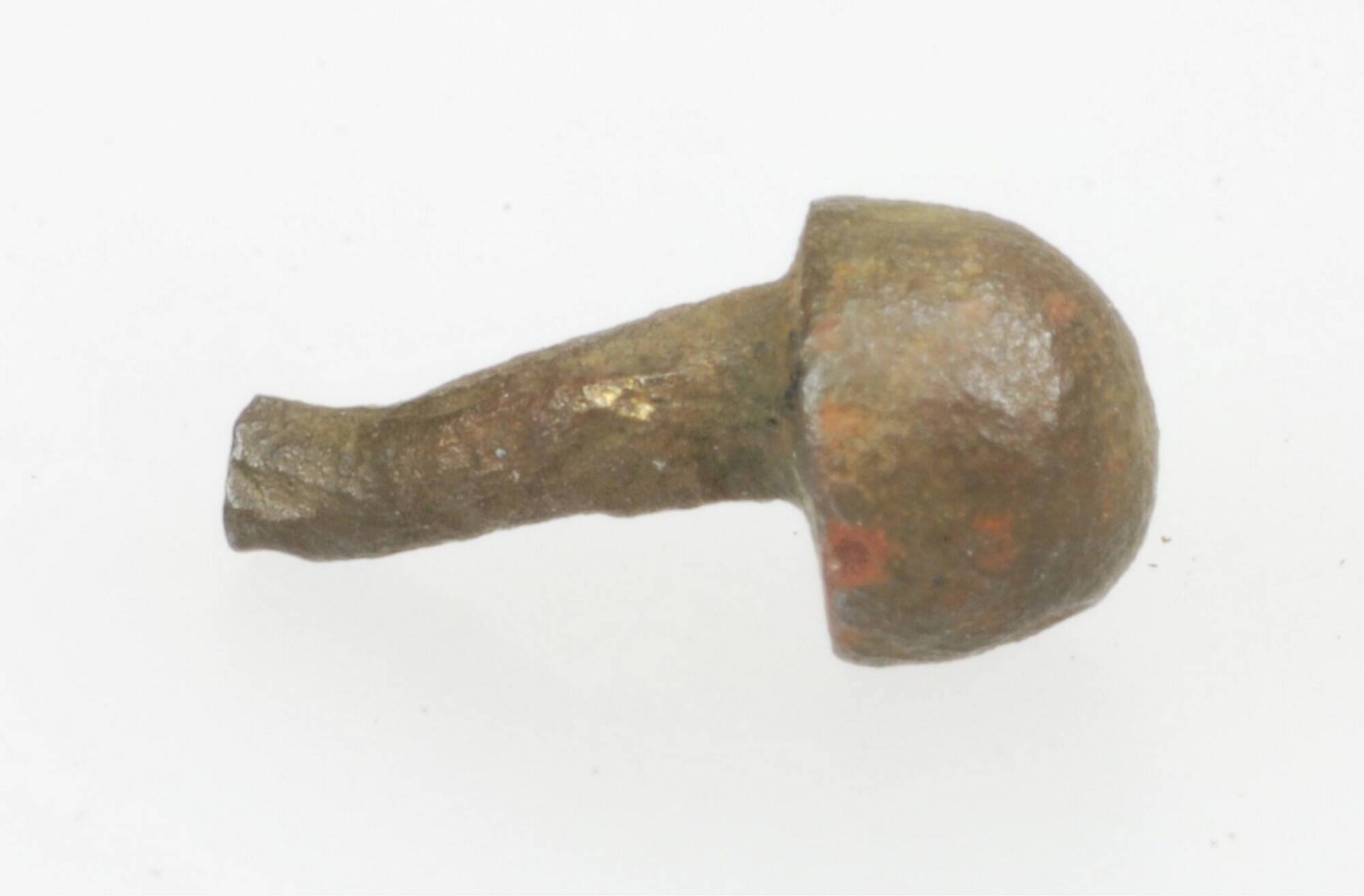Nagel; half bolle kop en een ronde schachtdoorsnede. De punt is plat geslagen