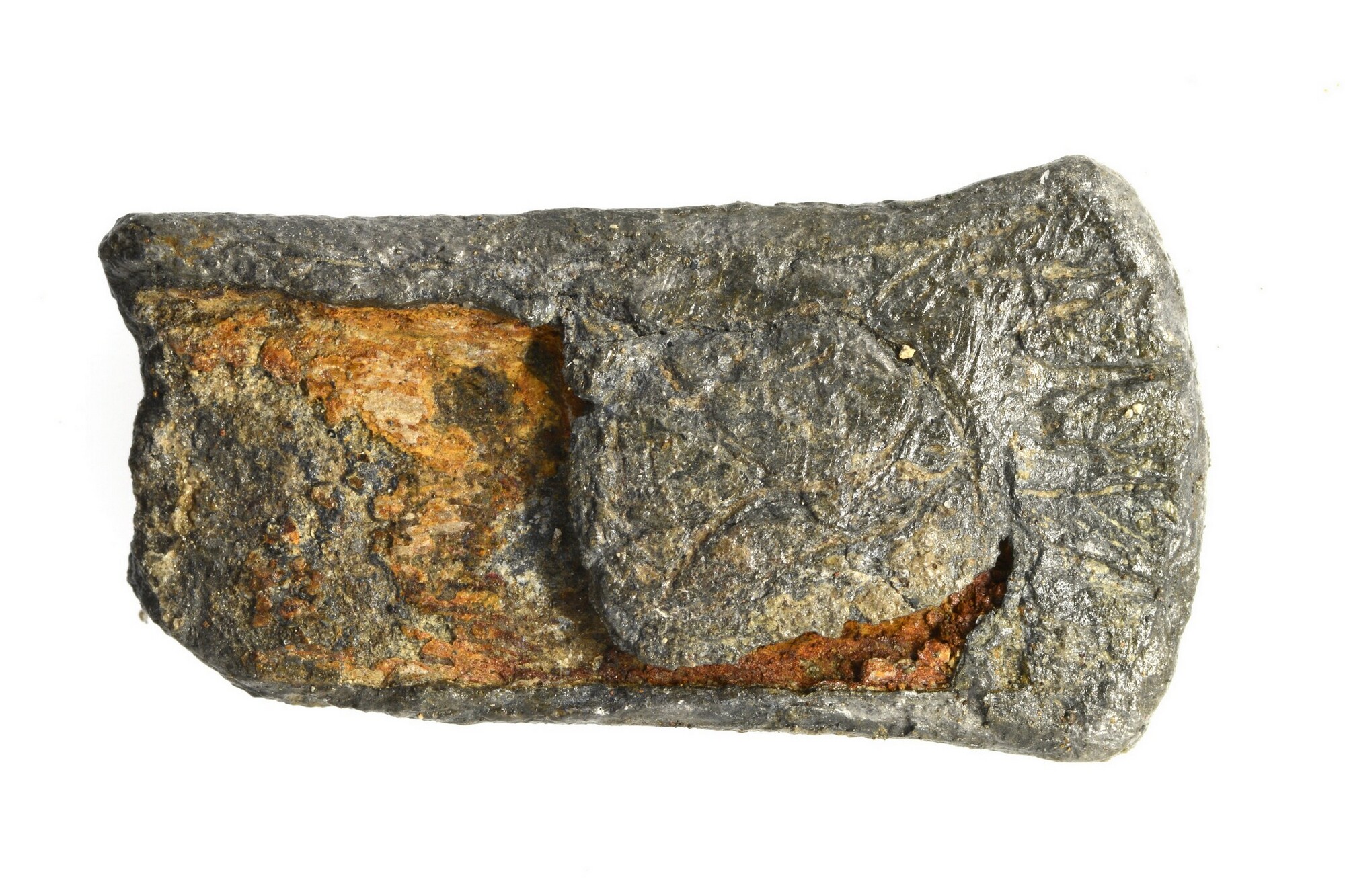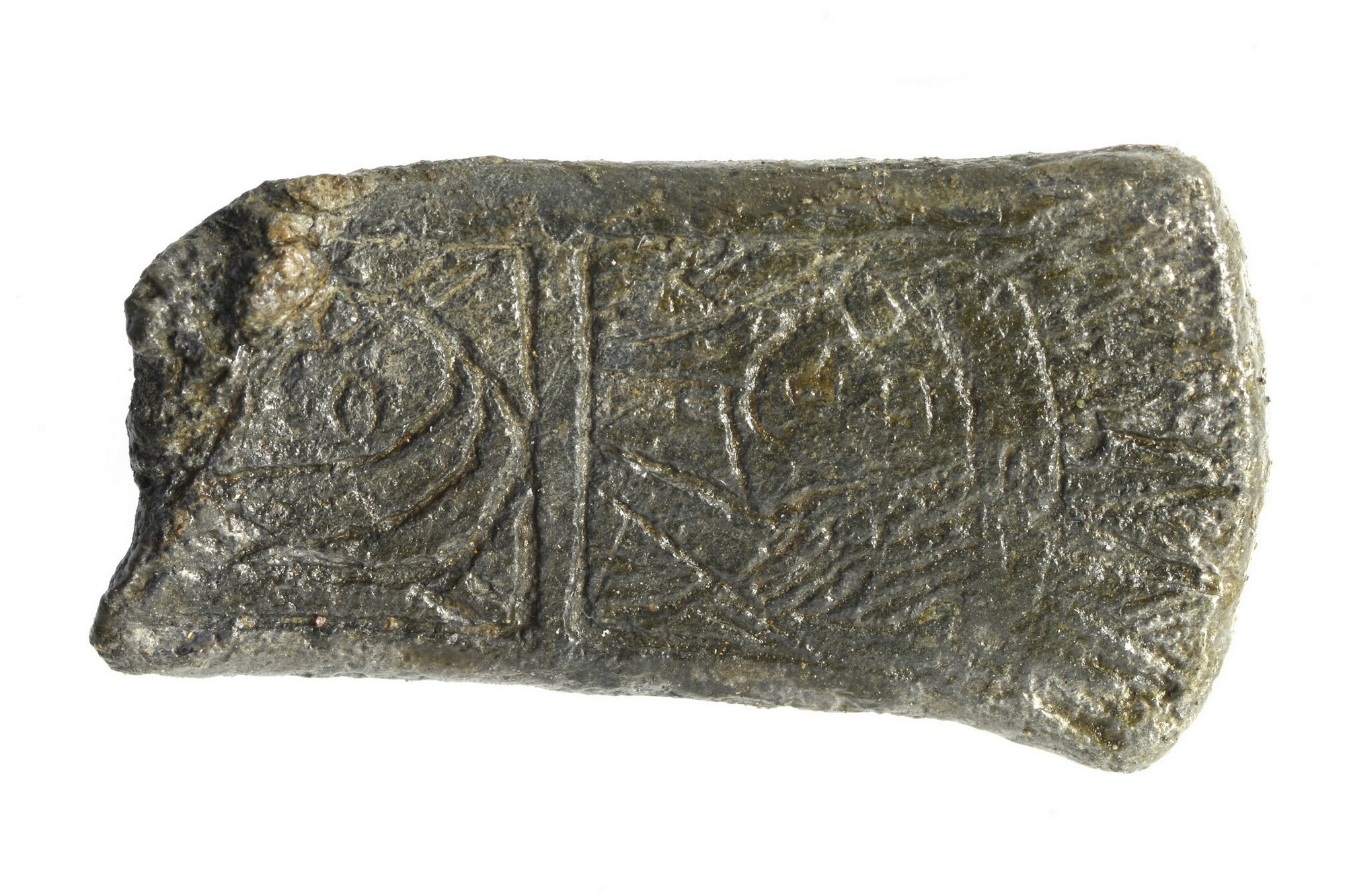 Heftbekroning versierd met op beide zijden twee ingegraveerde portretten (man en vrouw) boven elkaar afgebeeld