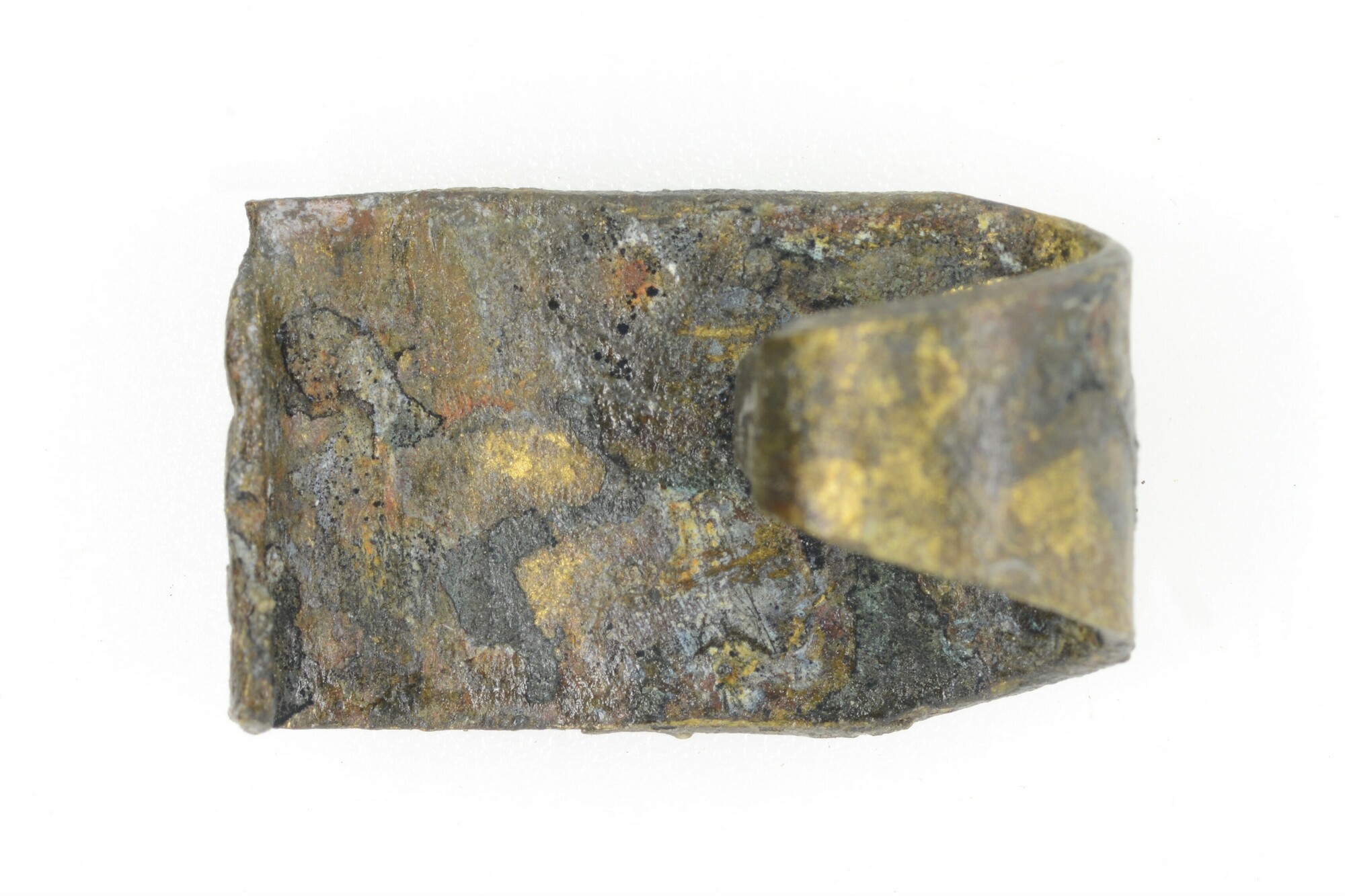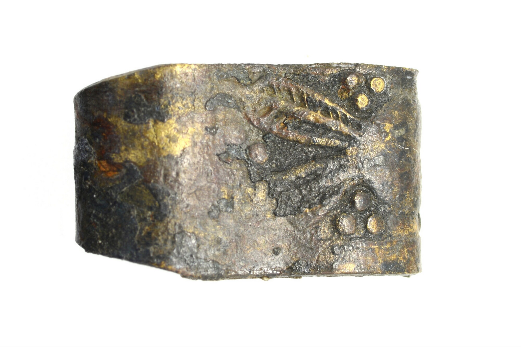 Haak?; versierd stripje met omgebogen uiteinde tot haak
