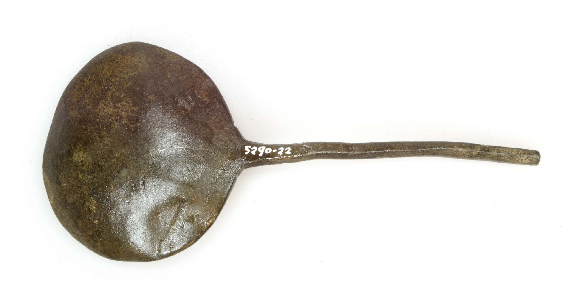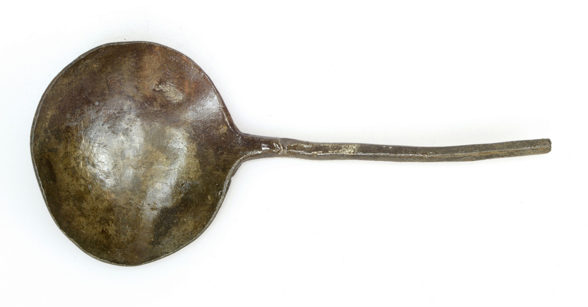 Lepel; sn-lep; ronde bak zonder naald aan de achterzijde en korte steel (deel afgebroken)
