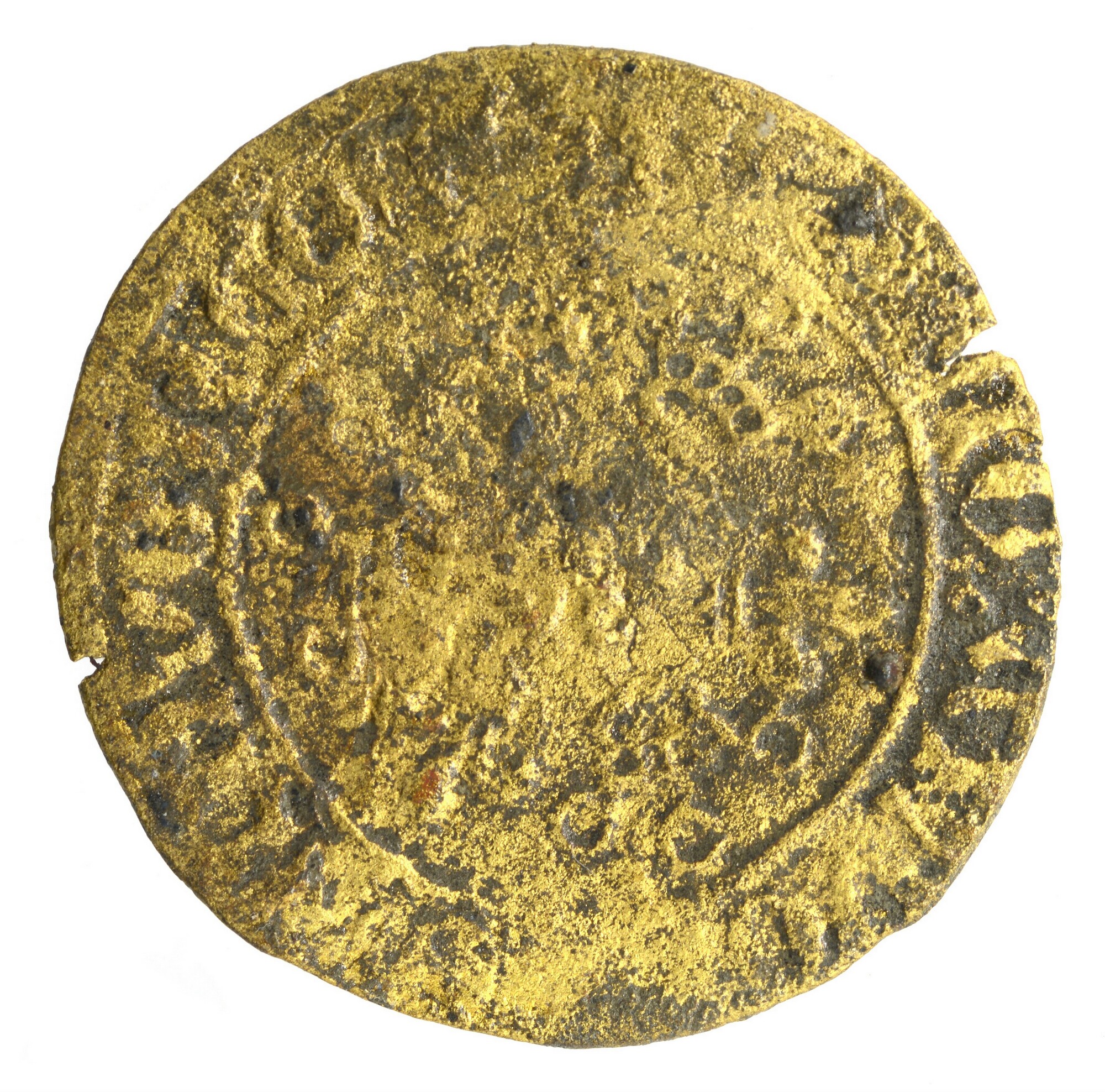 Rekenpenning; vz.: rijksappel binnen een driepasversiering met pseudo randtekst; kz.: drie Franse lelies en drie kronen en pseudo randtekst; herkomst: Neurenberg; gewicht: 0.90 gram