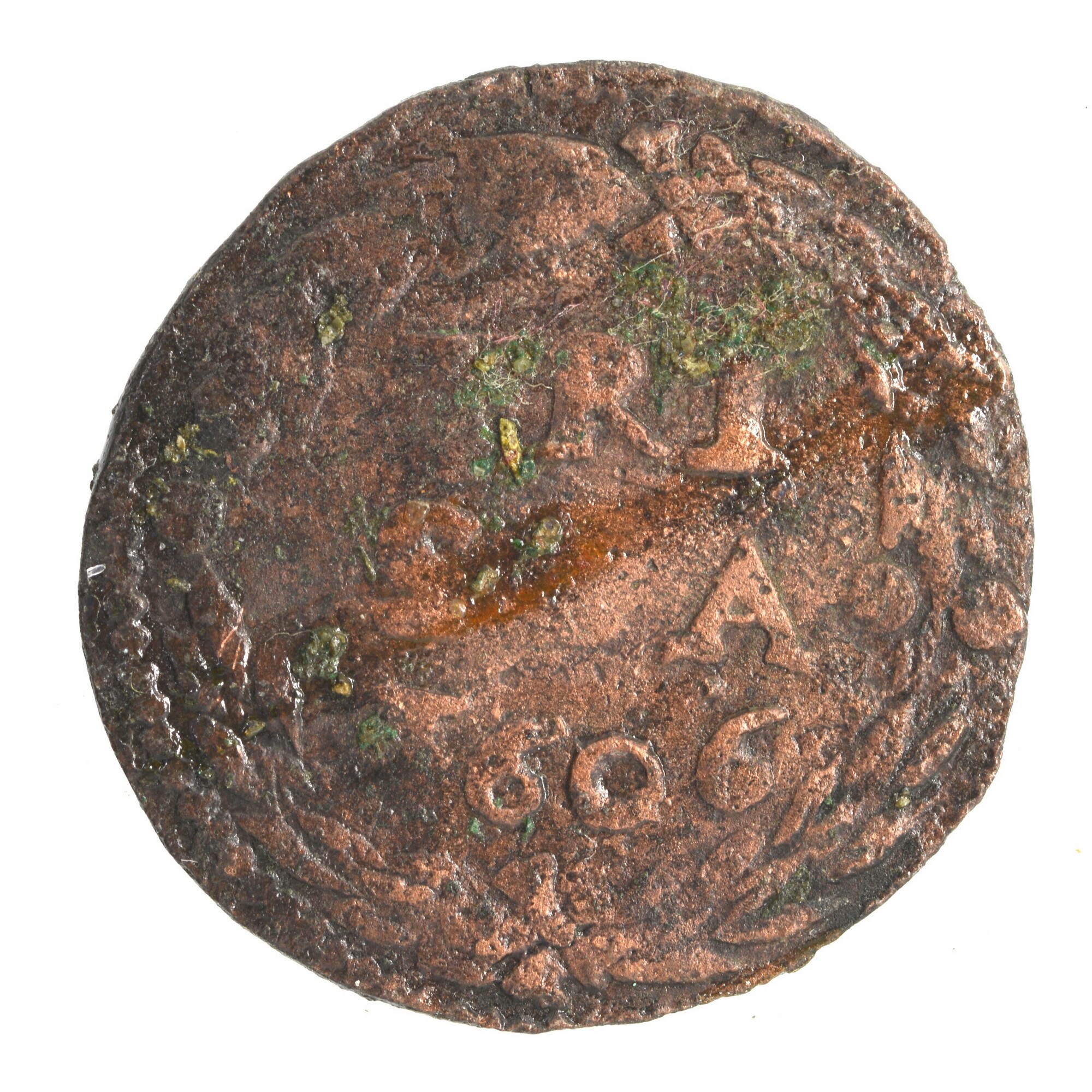 Duit; Friesland Provincie (1581-1795); vz.: tulpkrans met daarin de tekst FRI SIA in twee regels met daaronder het jaartal 1606; kz.: Gekroond wapen van Friesland met twee gaande leeuwen boven elkaar. Het wapen heeft kleine versieringen aan de rand en loopt onderin enigszins in een puntje uit en randtekst NISI. DNS. NOBISCV. ; gewicht: 2.30 ...