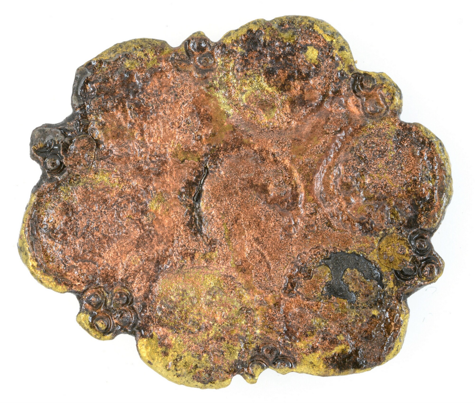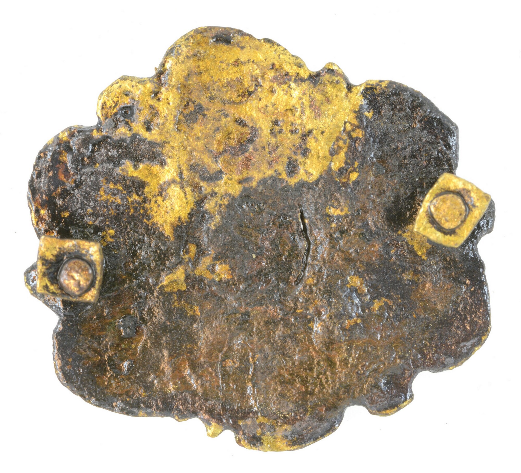 Riembeslag; versiering met kleine ronde bloemetjes en twee bevestigingslipjes aan de achterzijde