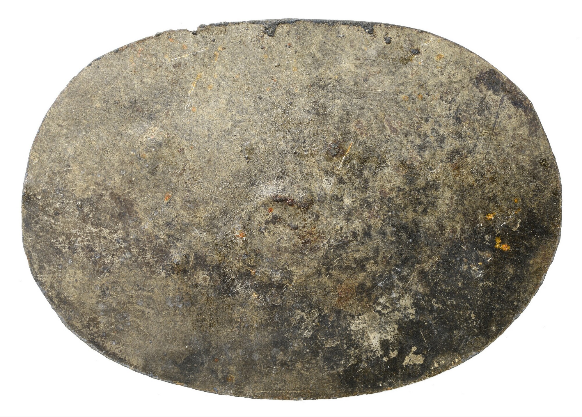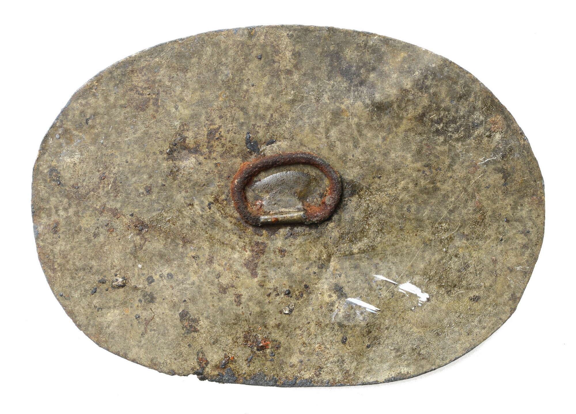 Deksel; platte ovale deksel met ijzeren handvat