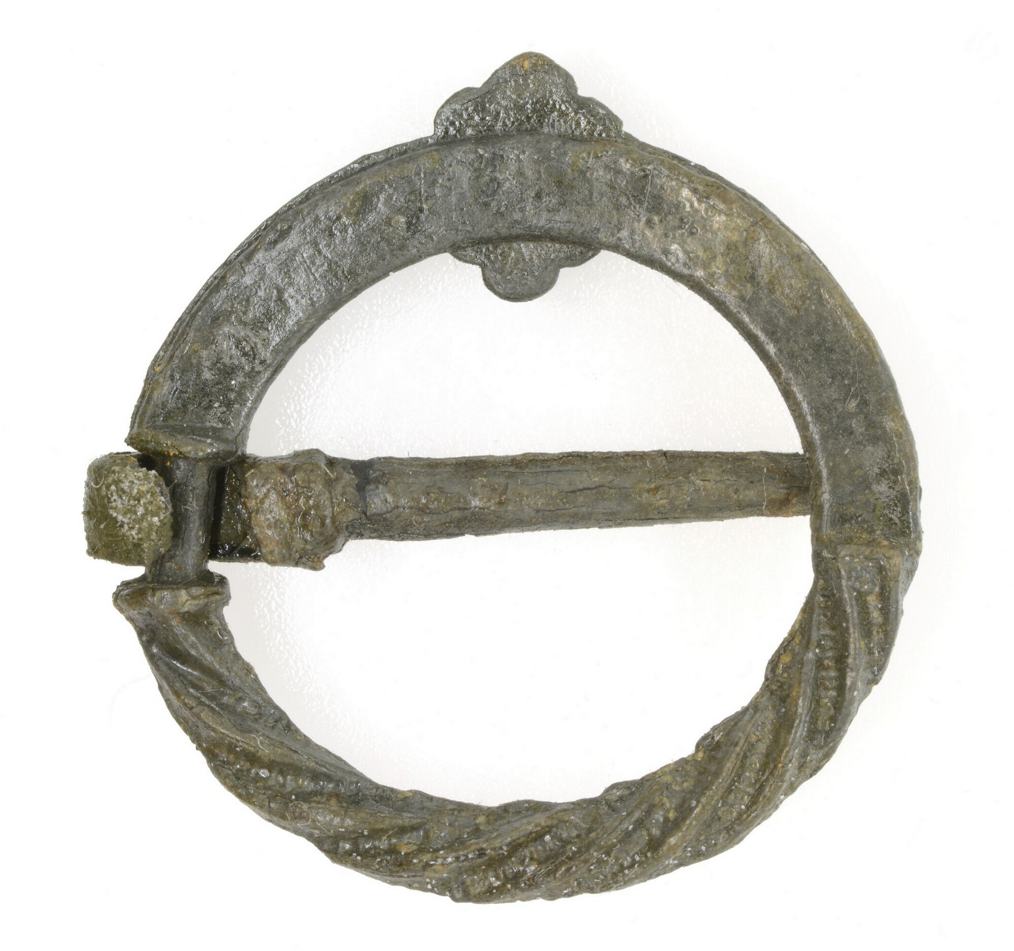 Gespbroche; bloem decoratie; half getordeerd; met angel; gewicht: 3.31 gram