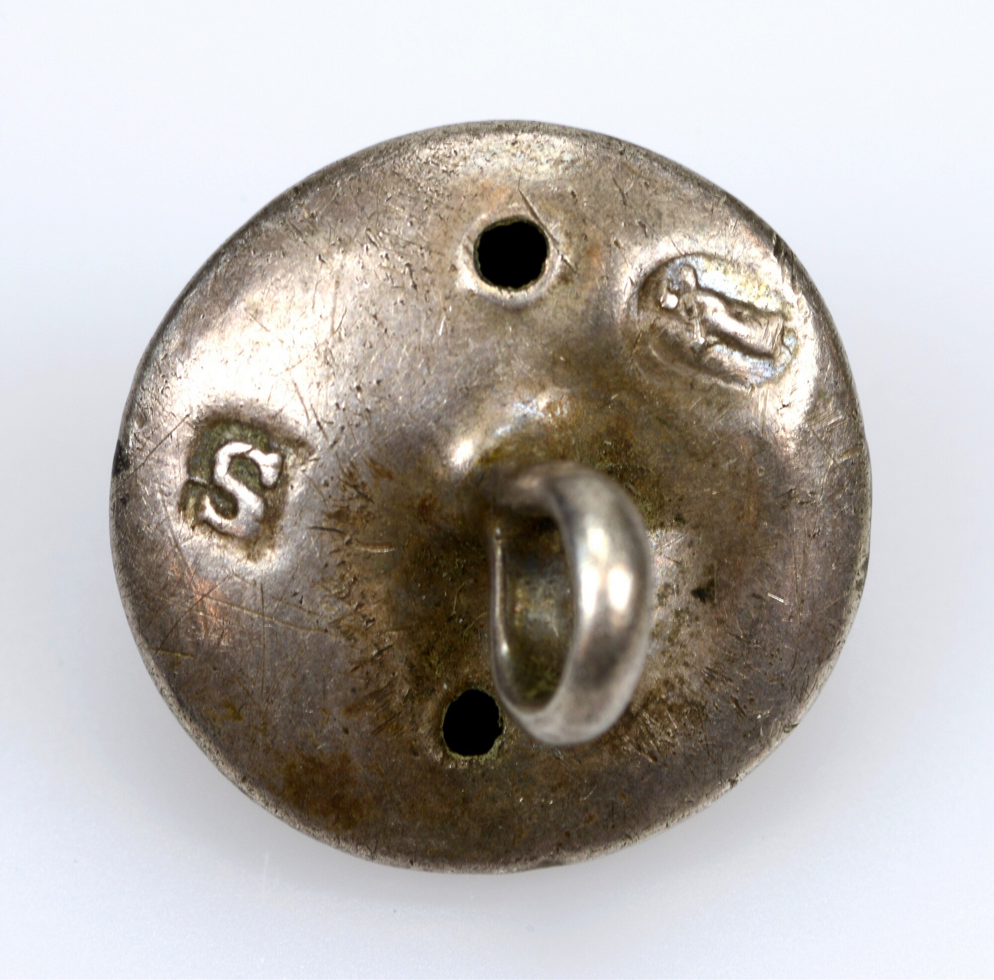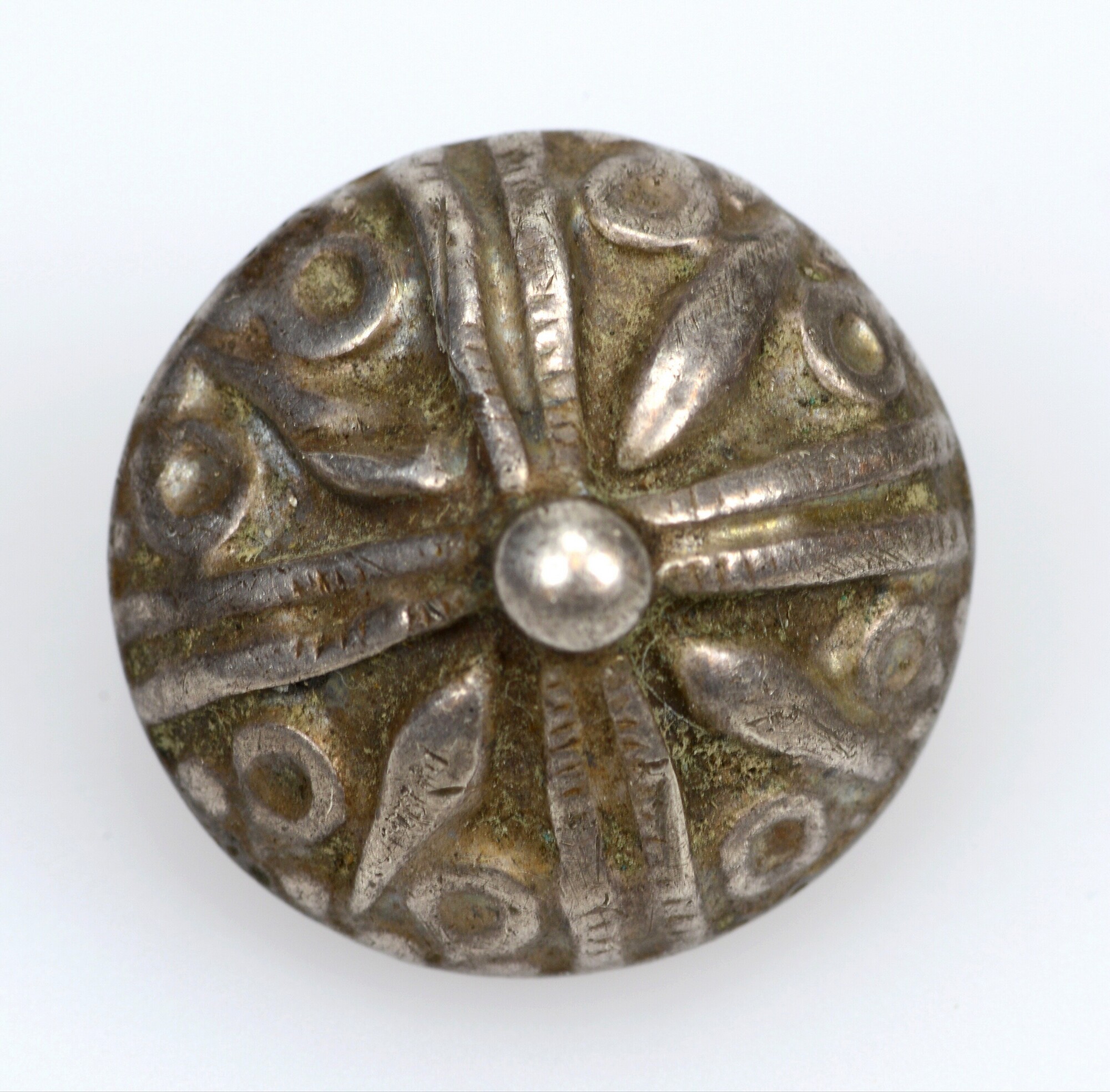 Keelknoop; draadoog; vz: geometrisch motief; kz: zilvermerk; gewicht: 3.48 gram