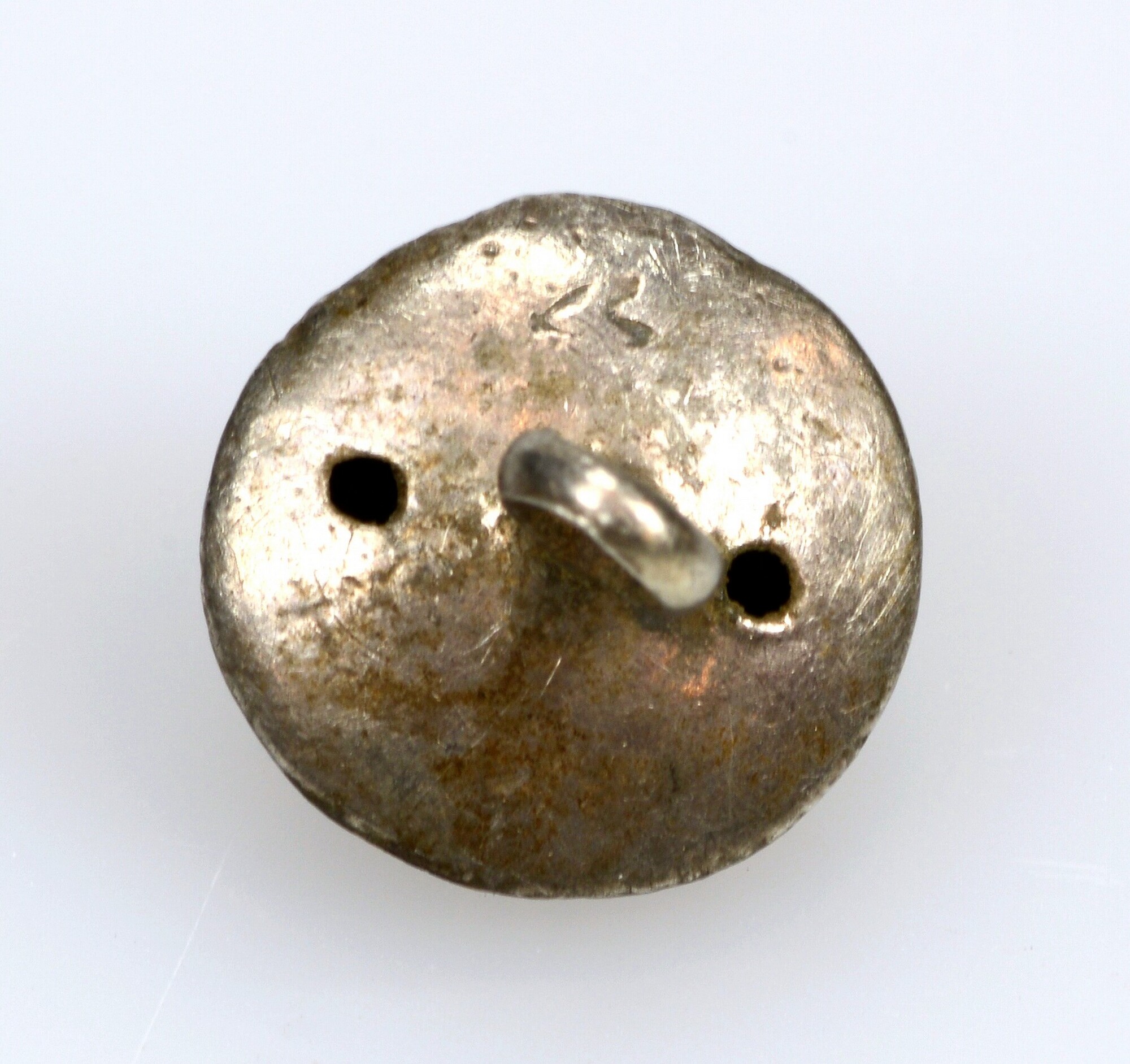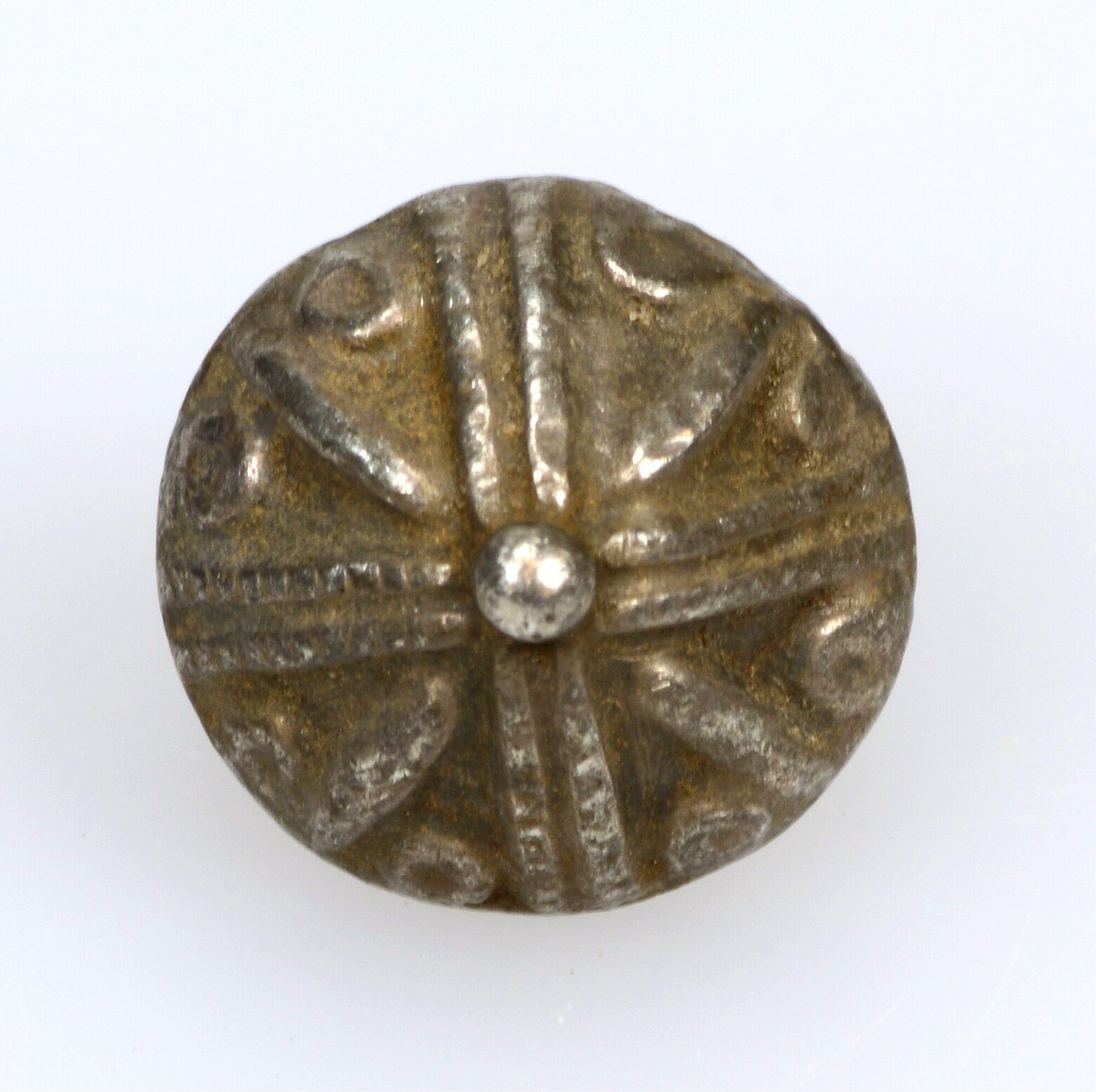 Keelknoop; draadoog; vz: geometrisch motief; kz: zilvermerk; gewicht: 1.43 gram