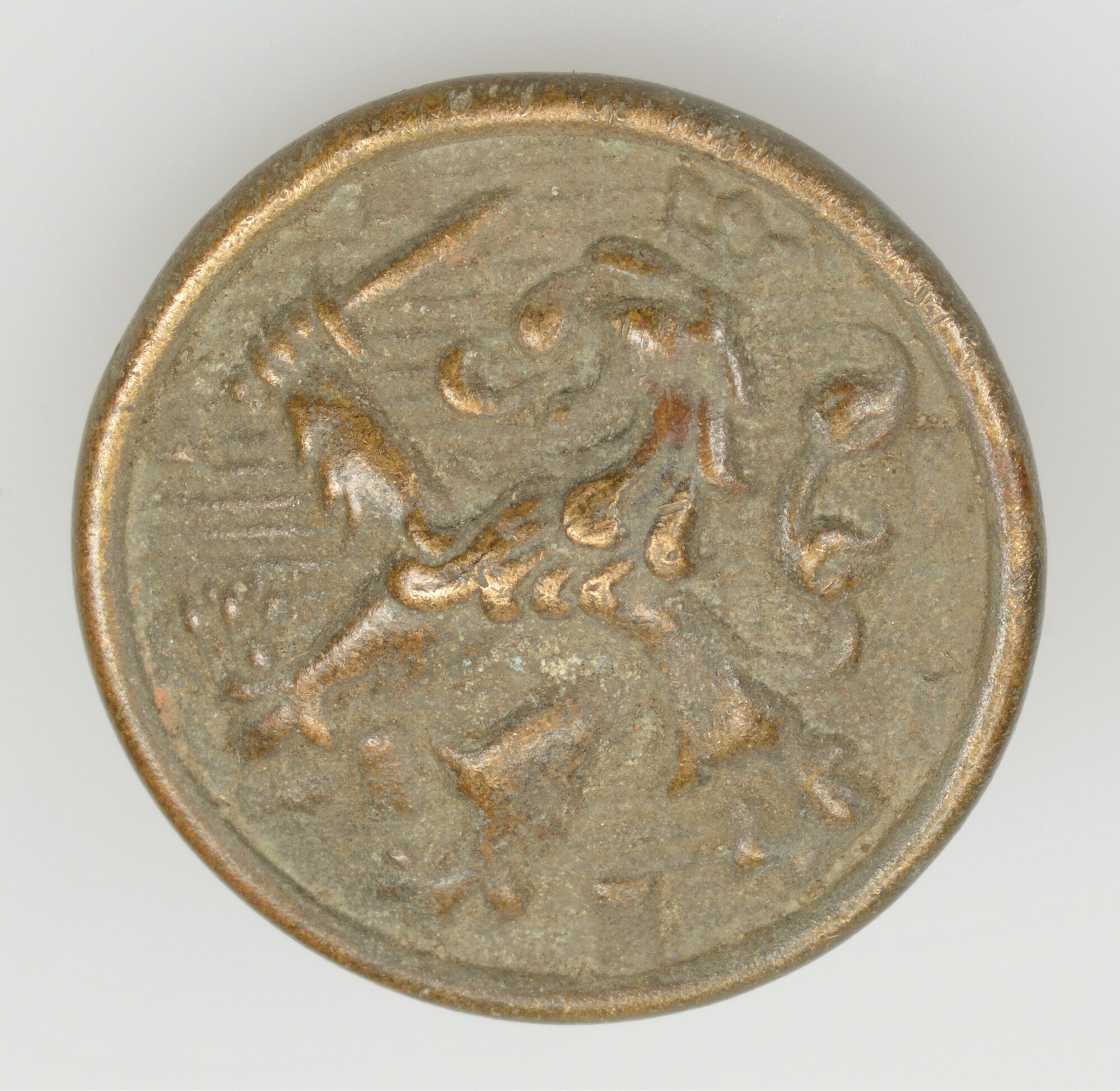 Knoop; militair; Nederlandse landmacht; draadoog; vz: klimmende leeuw met geheven zwaard; gewicht: 3,64 gram