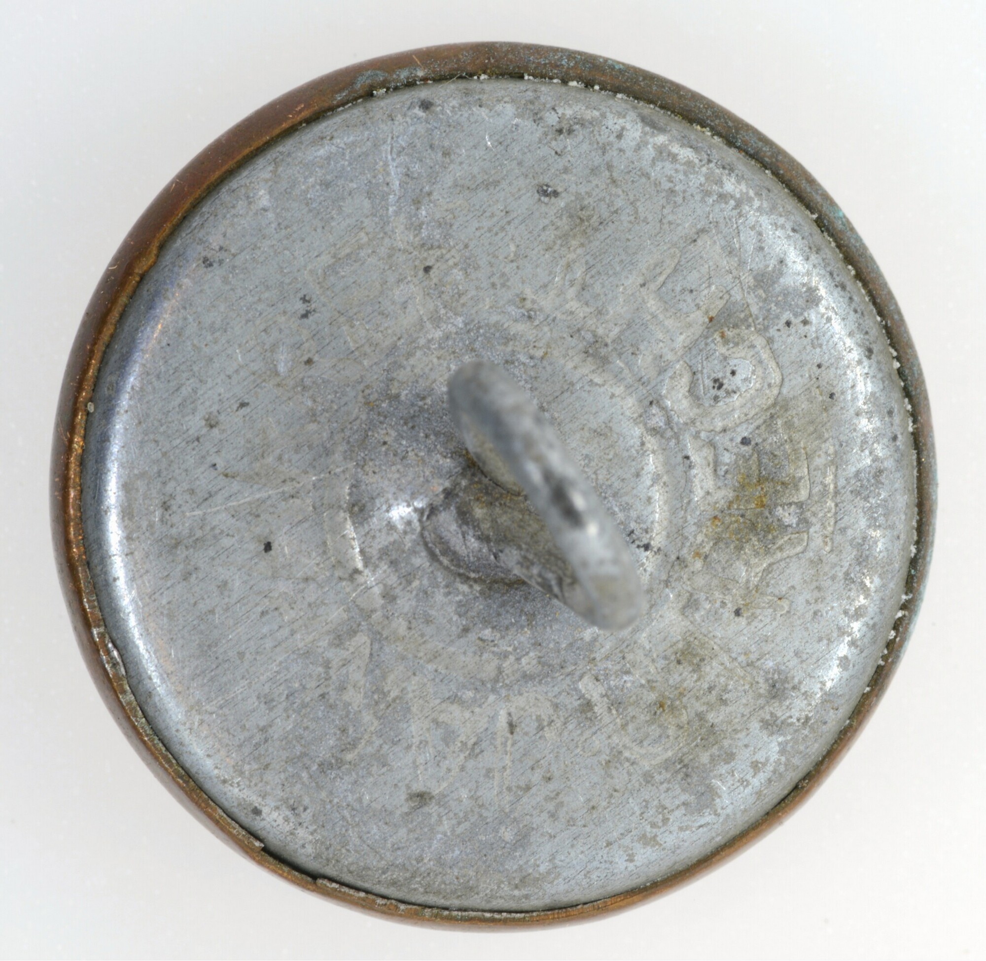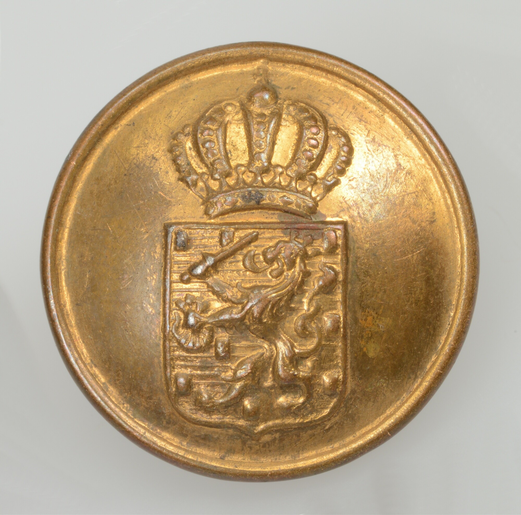 Knoop; draadoog; verguld; met aluminium achterzijde; vz: gekroond schild van het Rijkswapen; kz: JAN PARREE UT]RECH[T]; gewicht: 3.72 gram