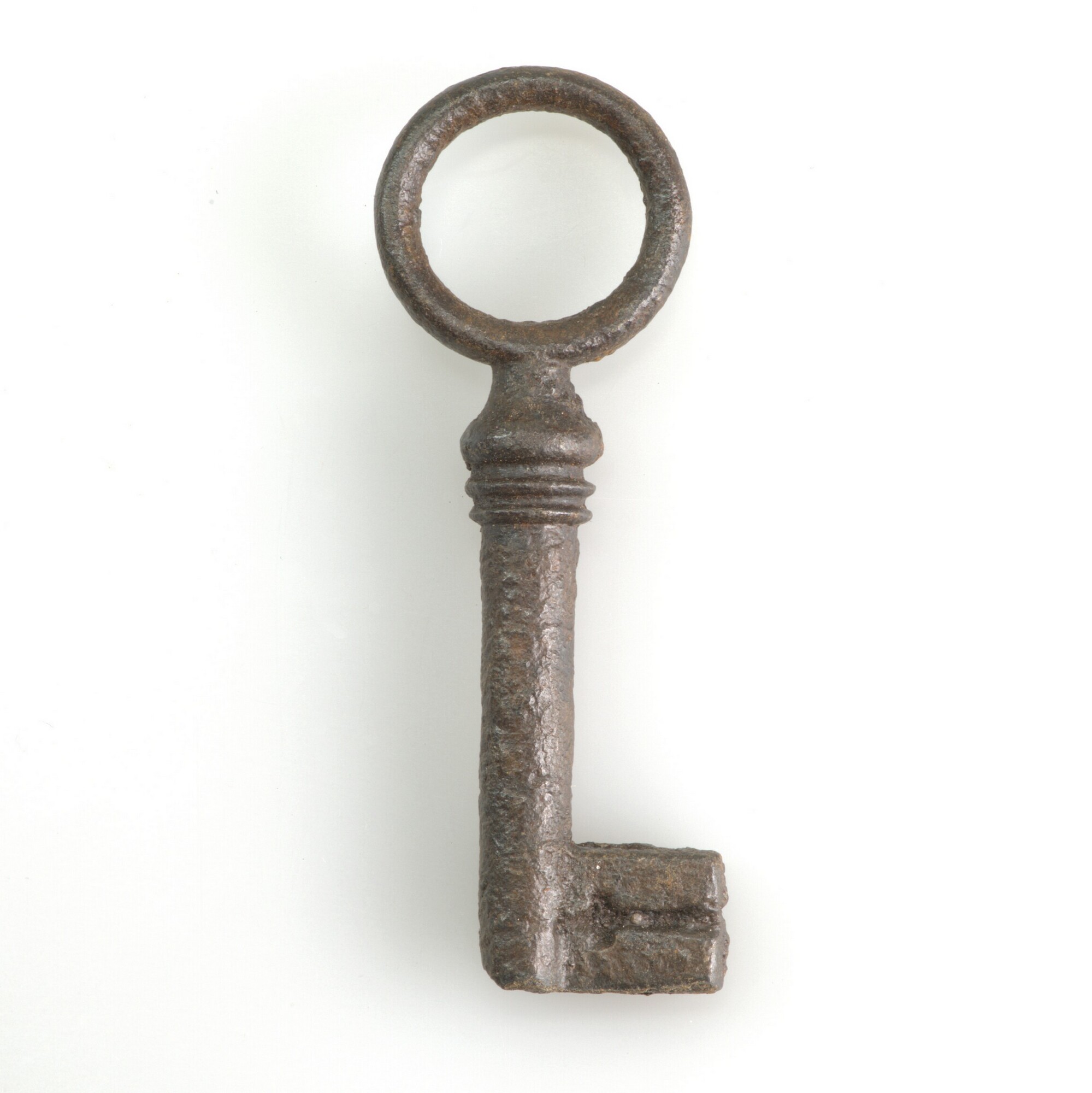 Sleutel; ronde greep en holle steel met korte baard