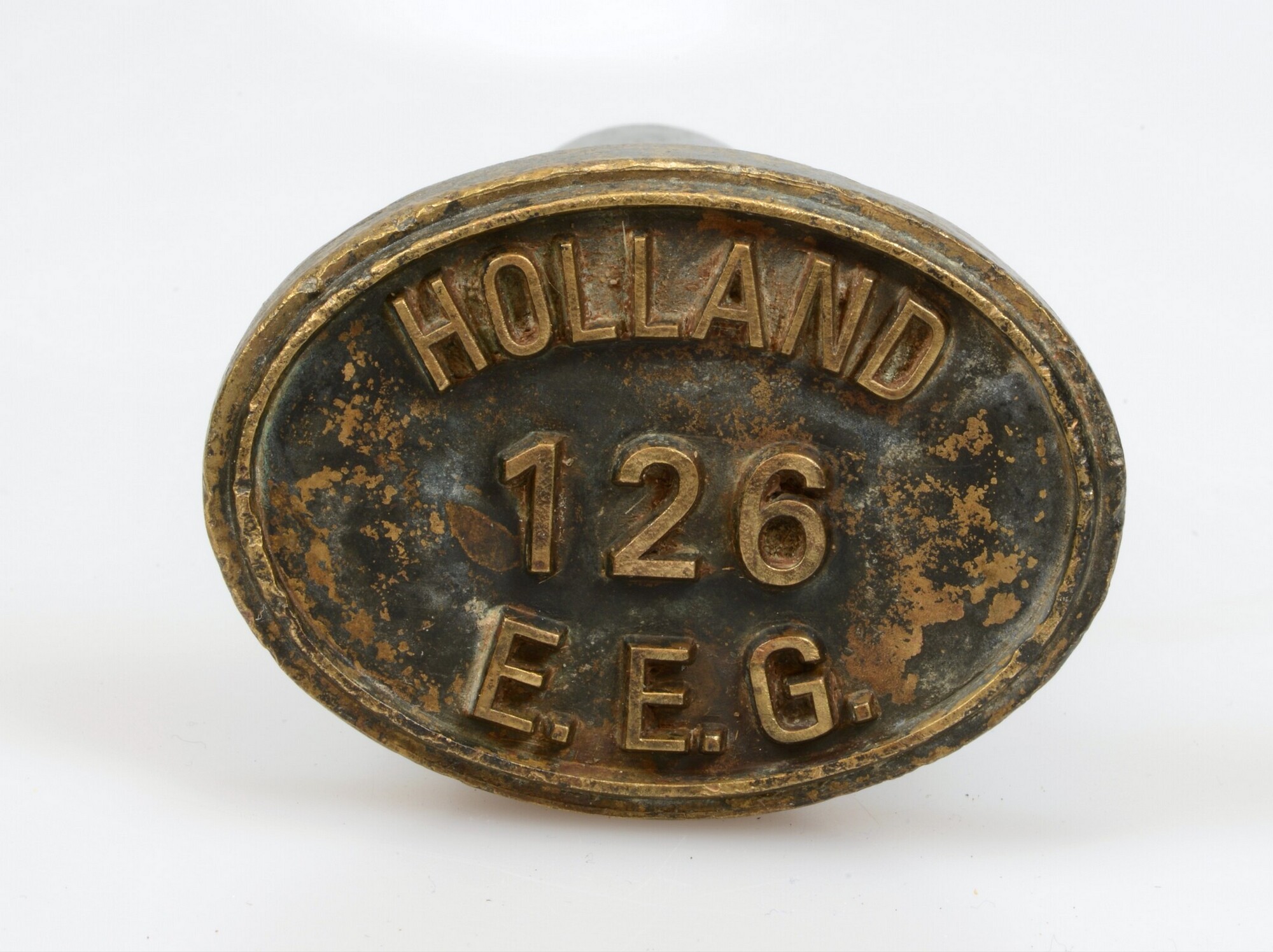 Keurstempel; ovaal; kunststof handgreep; 'HOLLAND 126 E.E.G.'