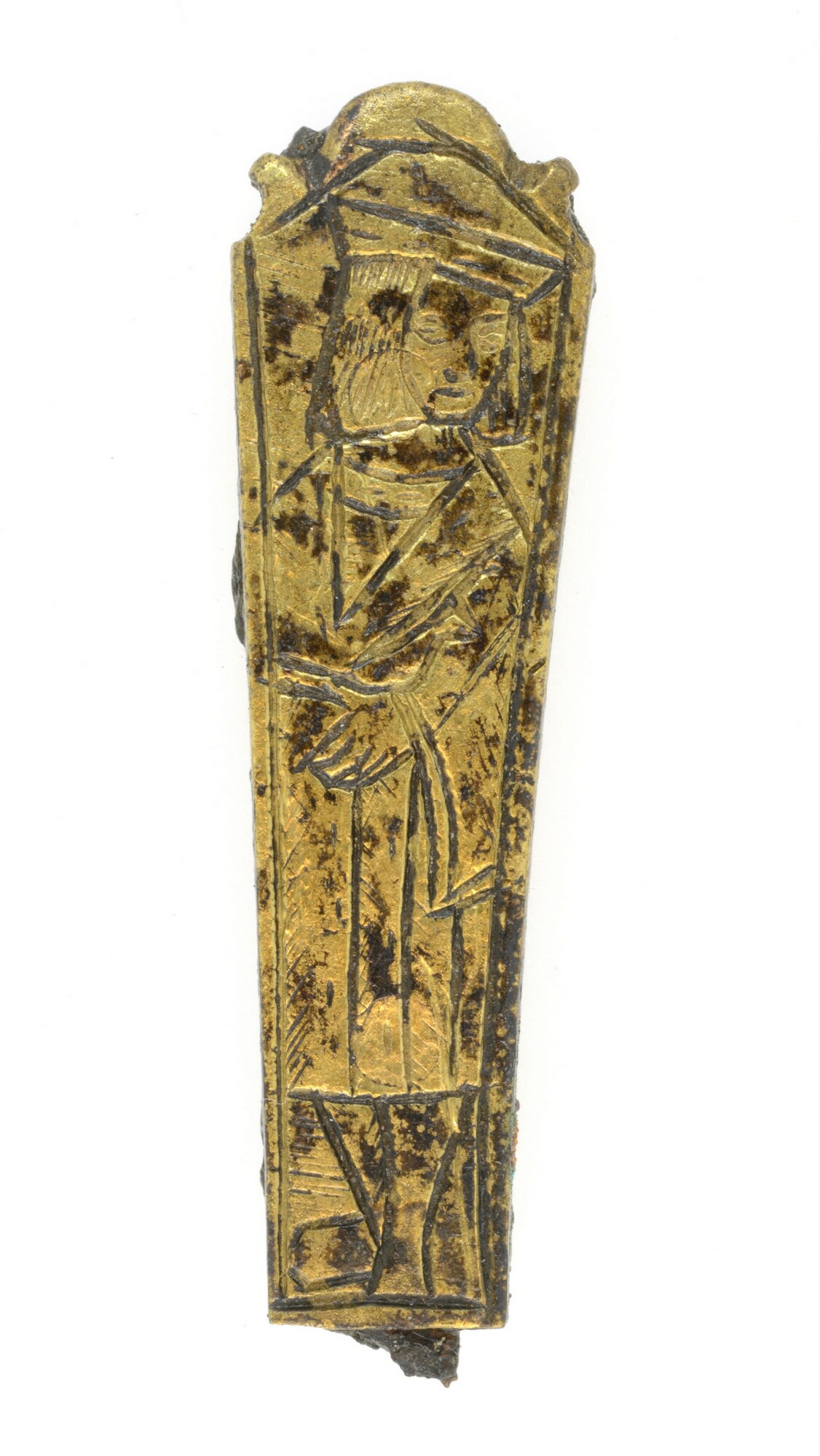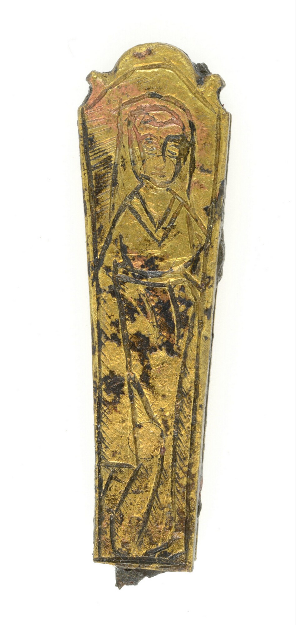 Mesheft; compleet heft van een klein formaat met een vrouwenfiguur op de ene zijde en een mannenfiguur aan de andere zijde