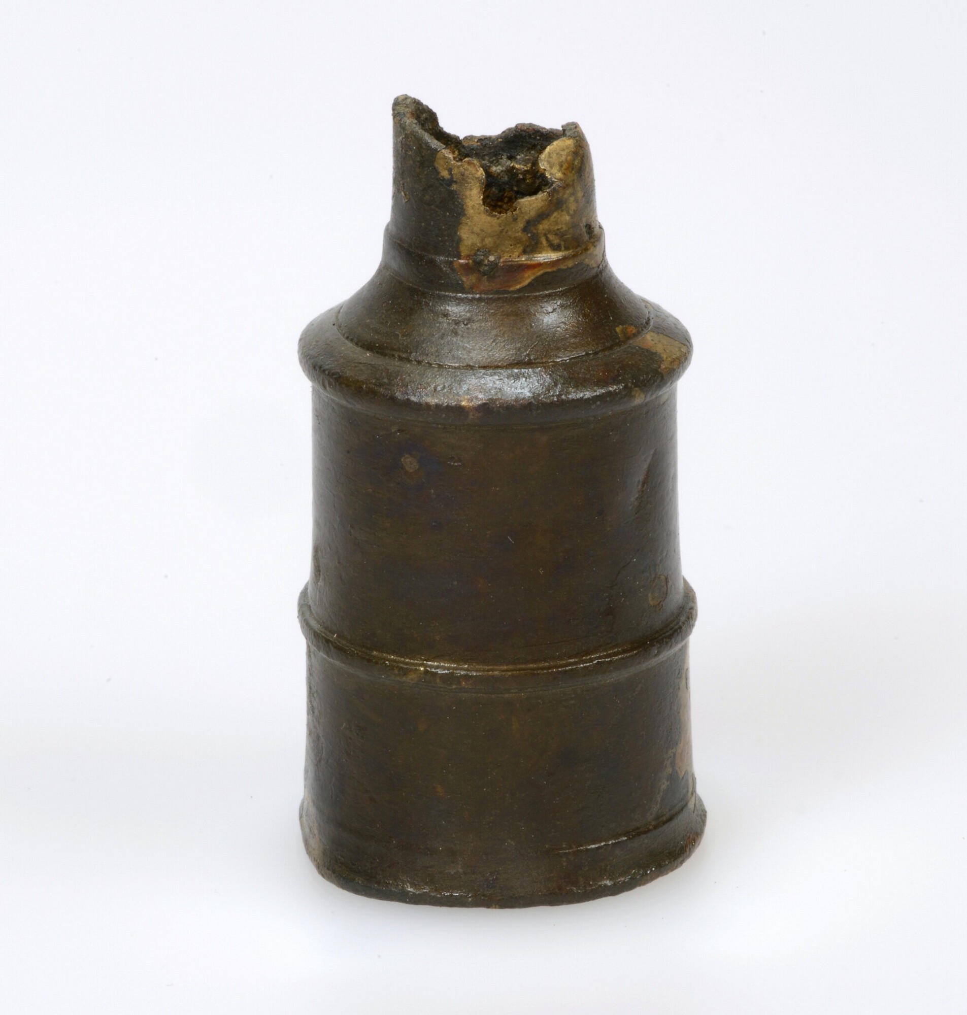 Kandelaar, fragment; ronde kaarshouder en voorzien van twee ribben
