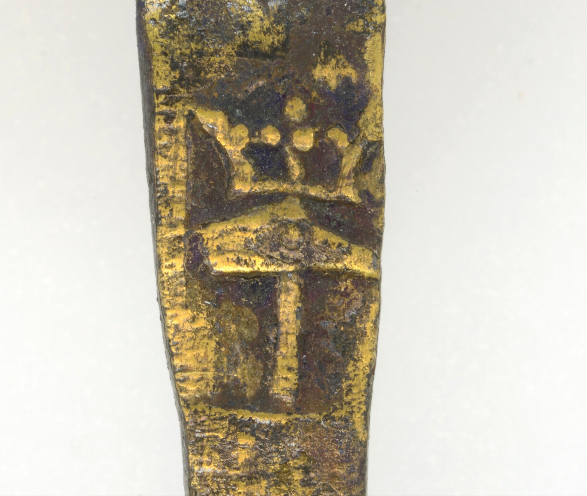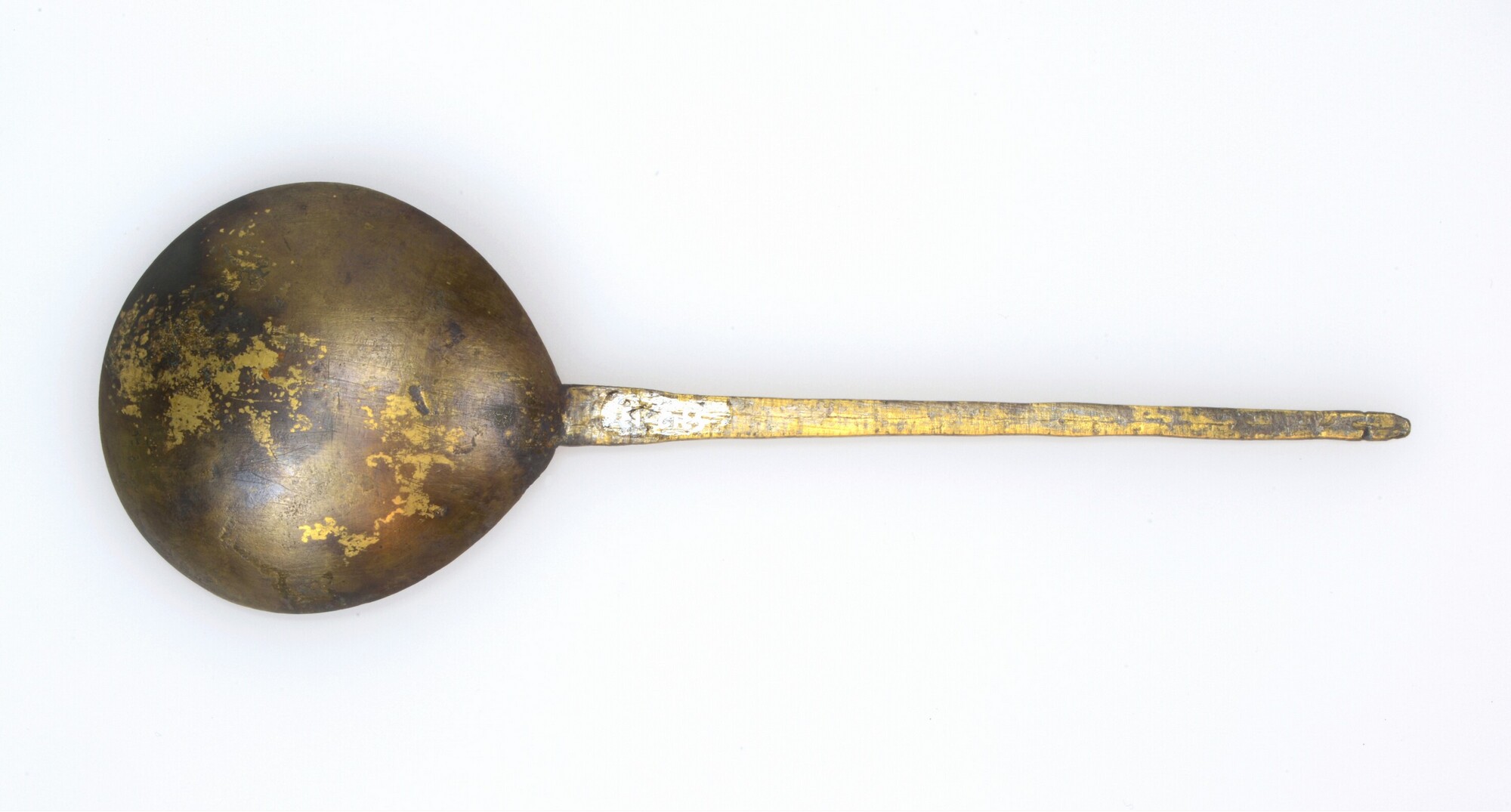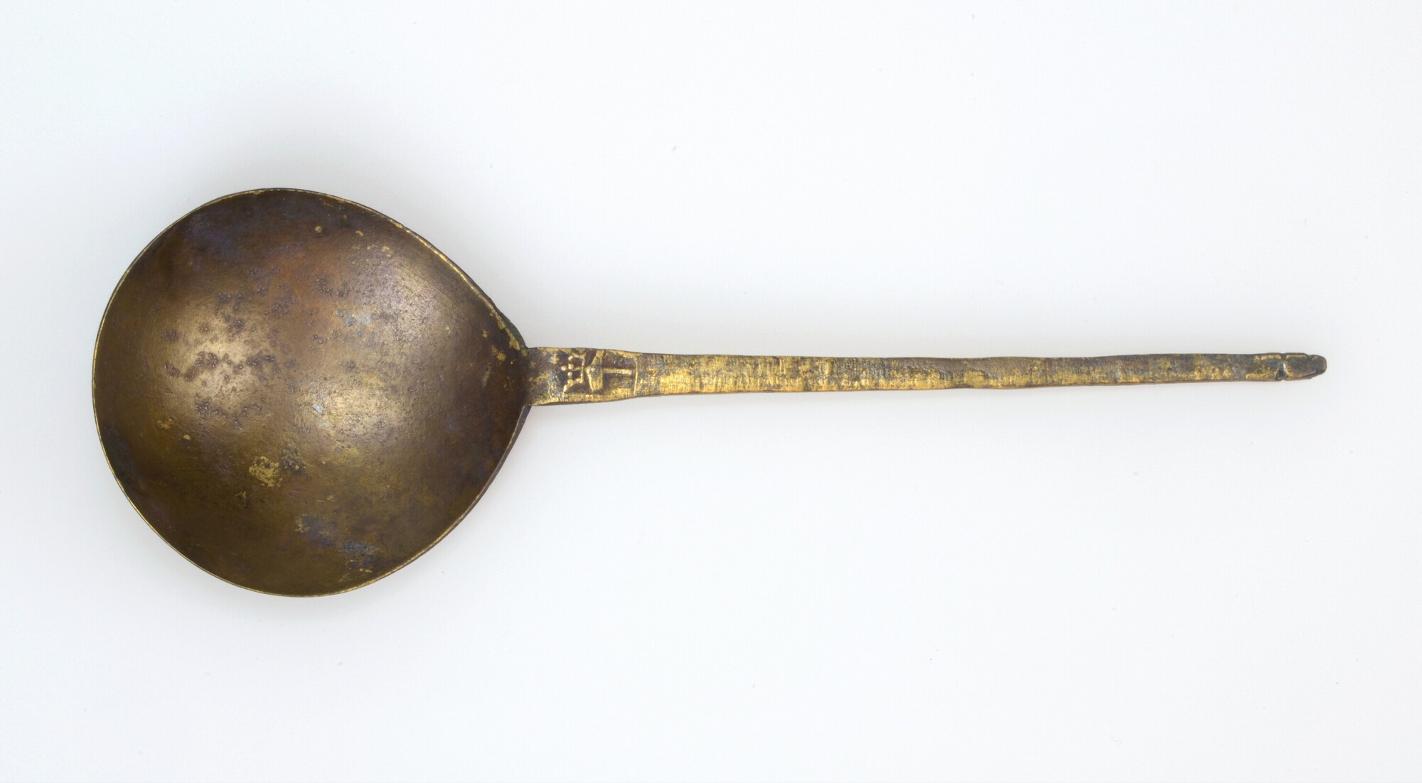 Lepel; druppelvormige bak en ruitvormige steel die uitloopt in een kegelvormig steeluiteinde