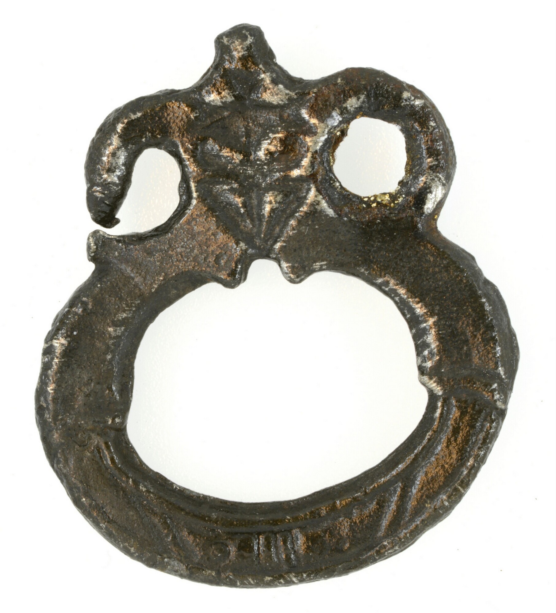 Gordelsluiting; verbindingsstuk met twee bevestigingsogen en een vrouwenhoofdje