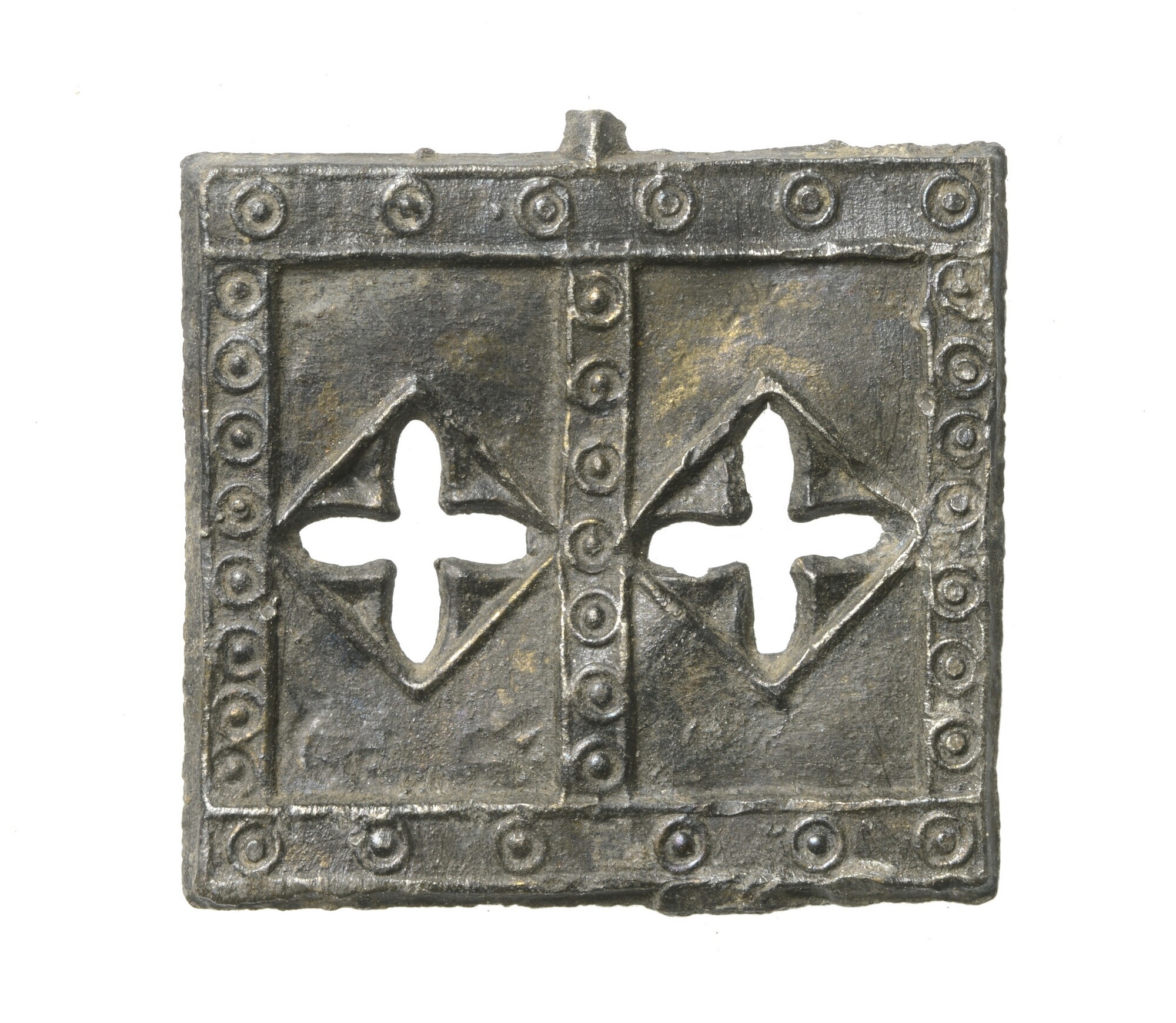 Insigne; vierkant onderdeel met omlijsting en twee Christelijke kruizen