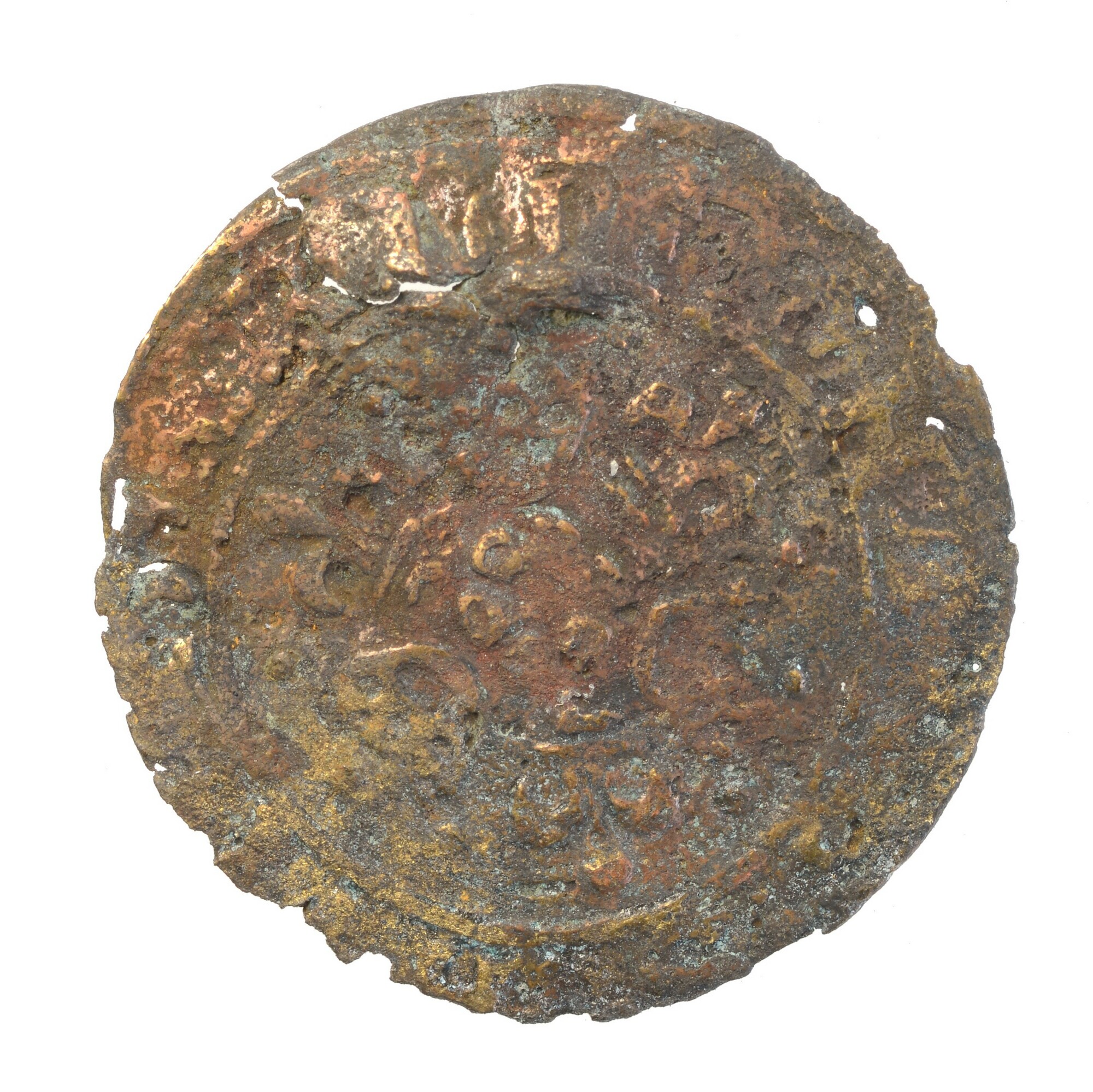 Rekenpenning; vz.: rijksappel binnen een driepasversiering met pseudo randtekst; kz.: drie Franse lelies en drie kronen en pseudo randtekst; herkomst: Neurenberg; gewicht: 1.13 gram