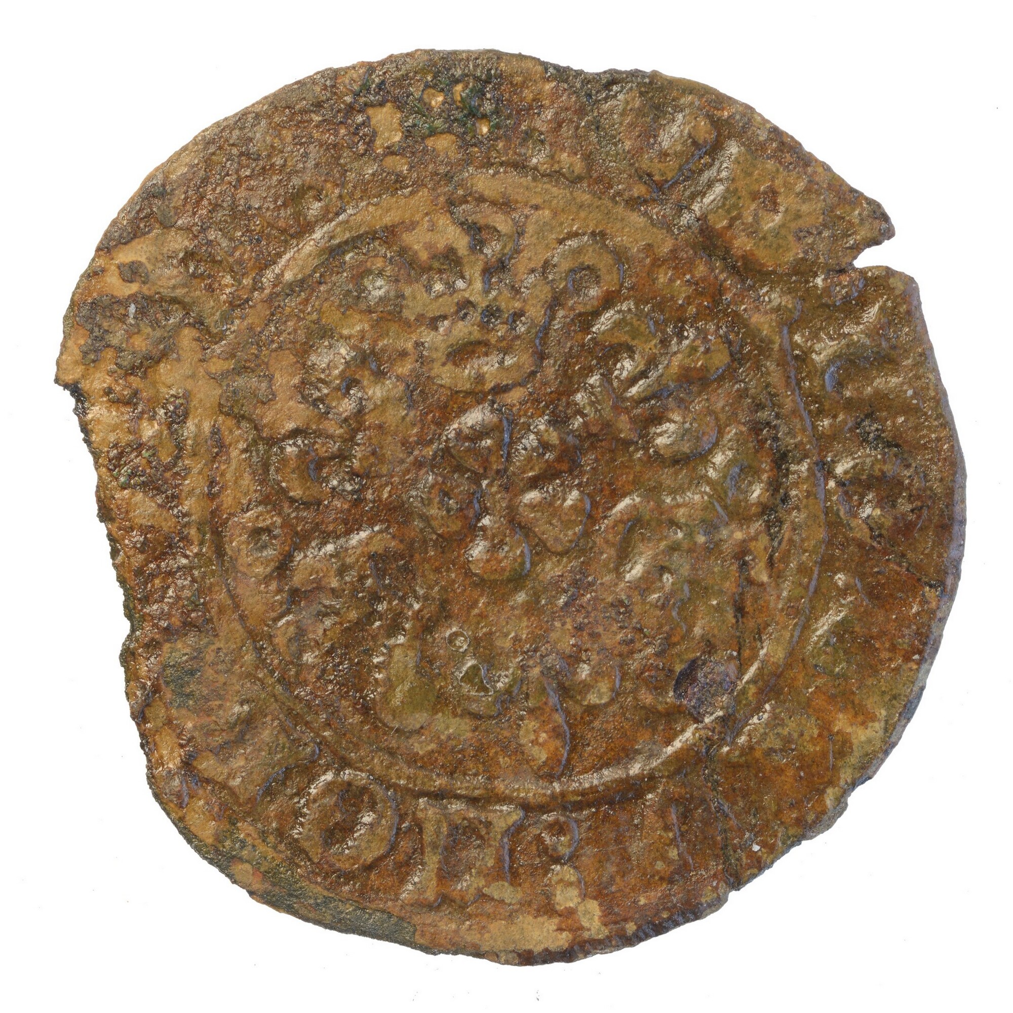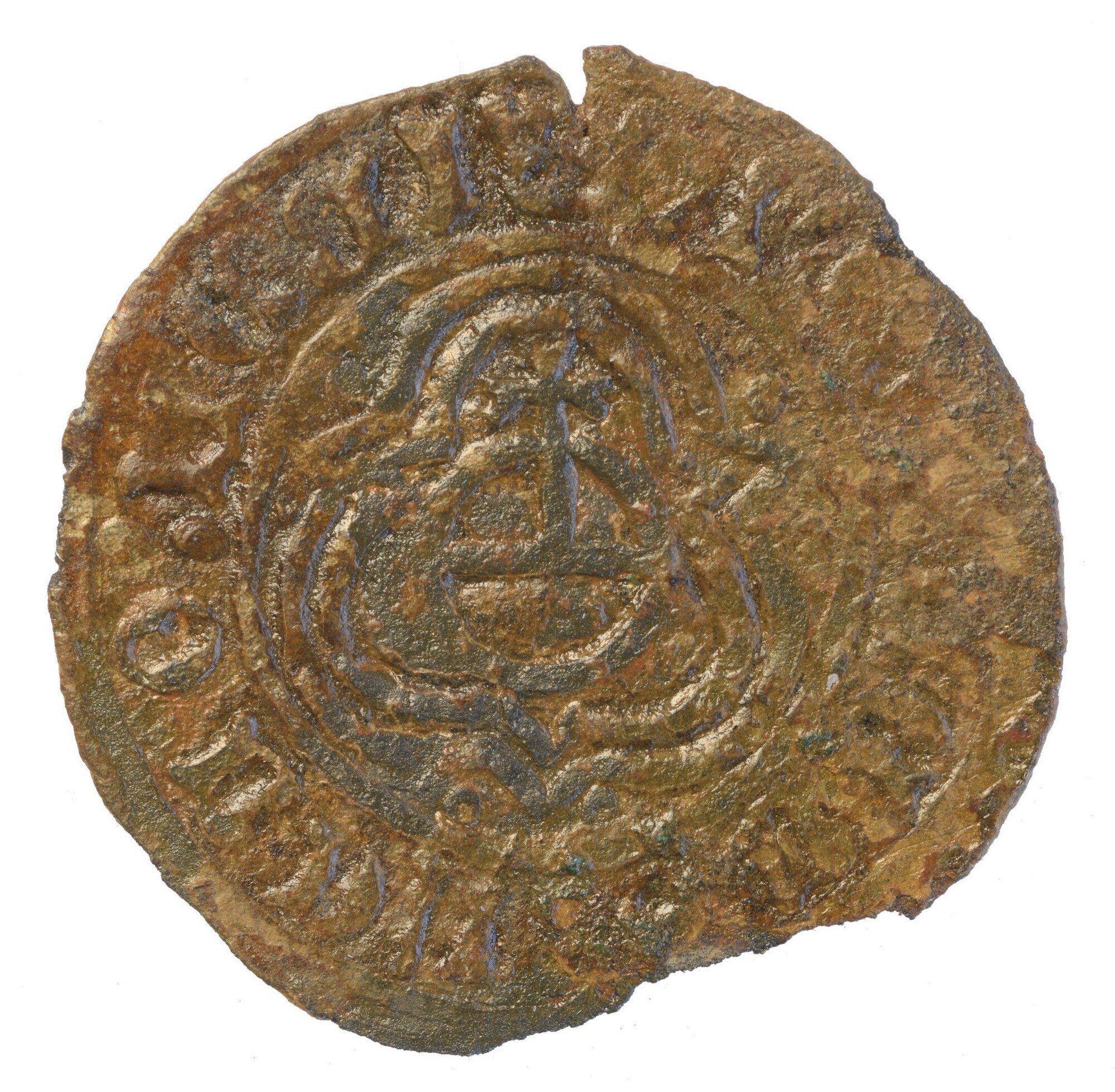 Rekenpenning; vz.: rijksappel met pseudotekst; kz.: drie Franse lelies en drie kronen; herkomst: Neurenberg; gewicht: 1.55 gram